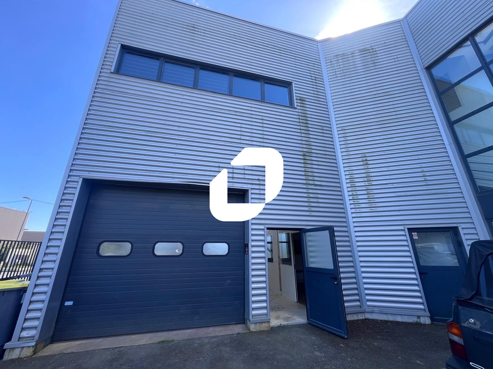 . Façade en bardage. Accès véhicules légers
