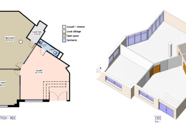 . Bureaux disposant de la fibre optique, baie de brassage et câblage informatique