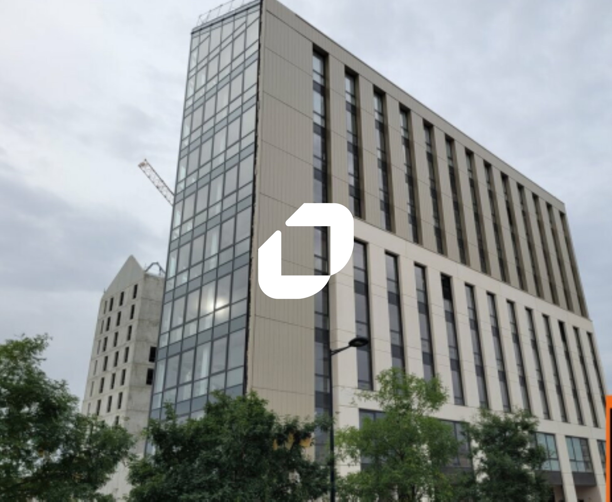 . Bâtiment indépendant. Façade mur rideau