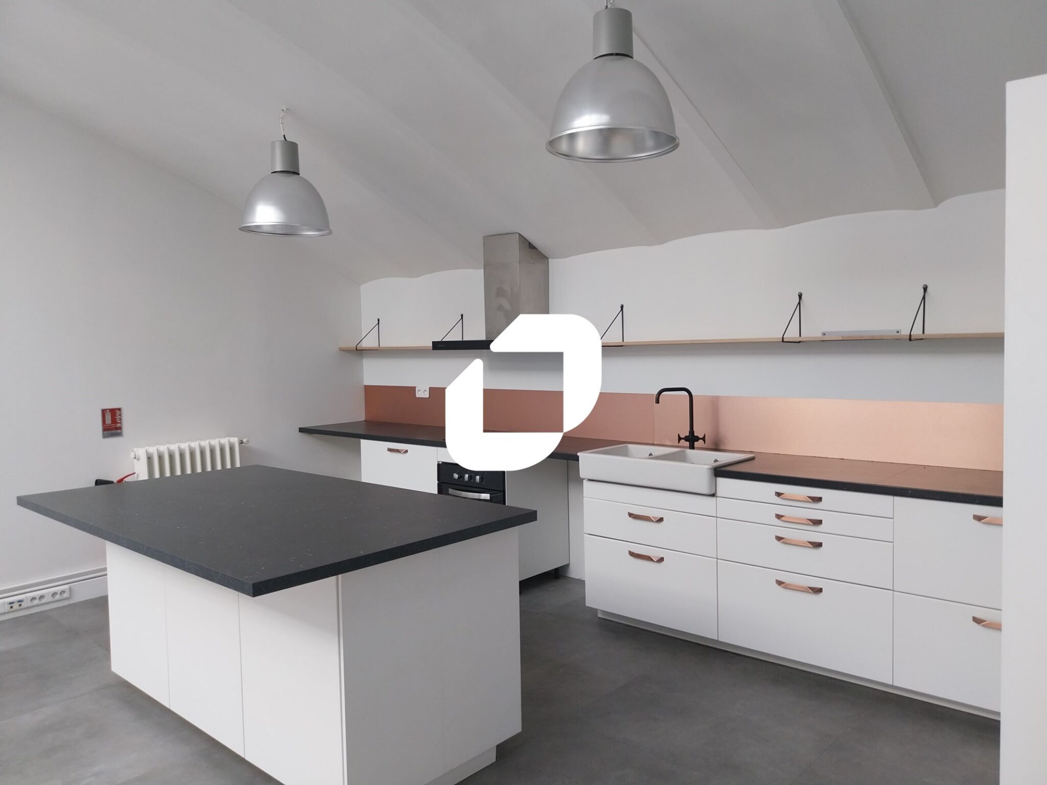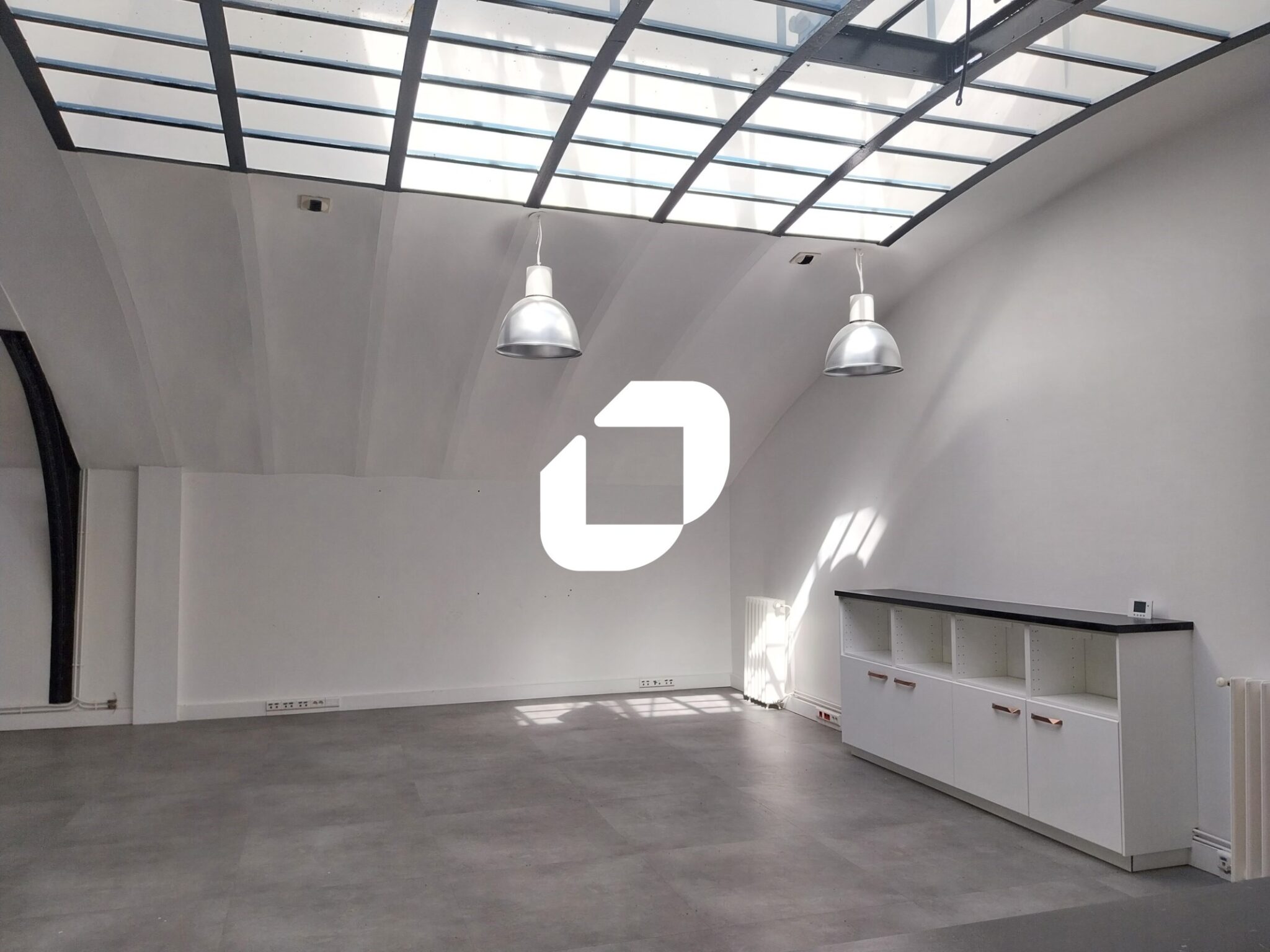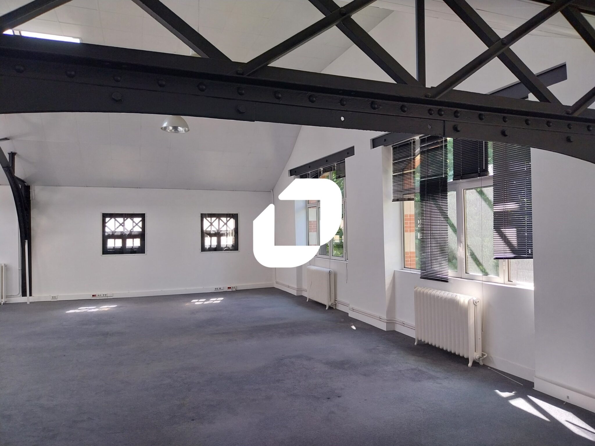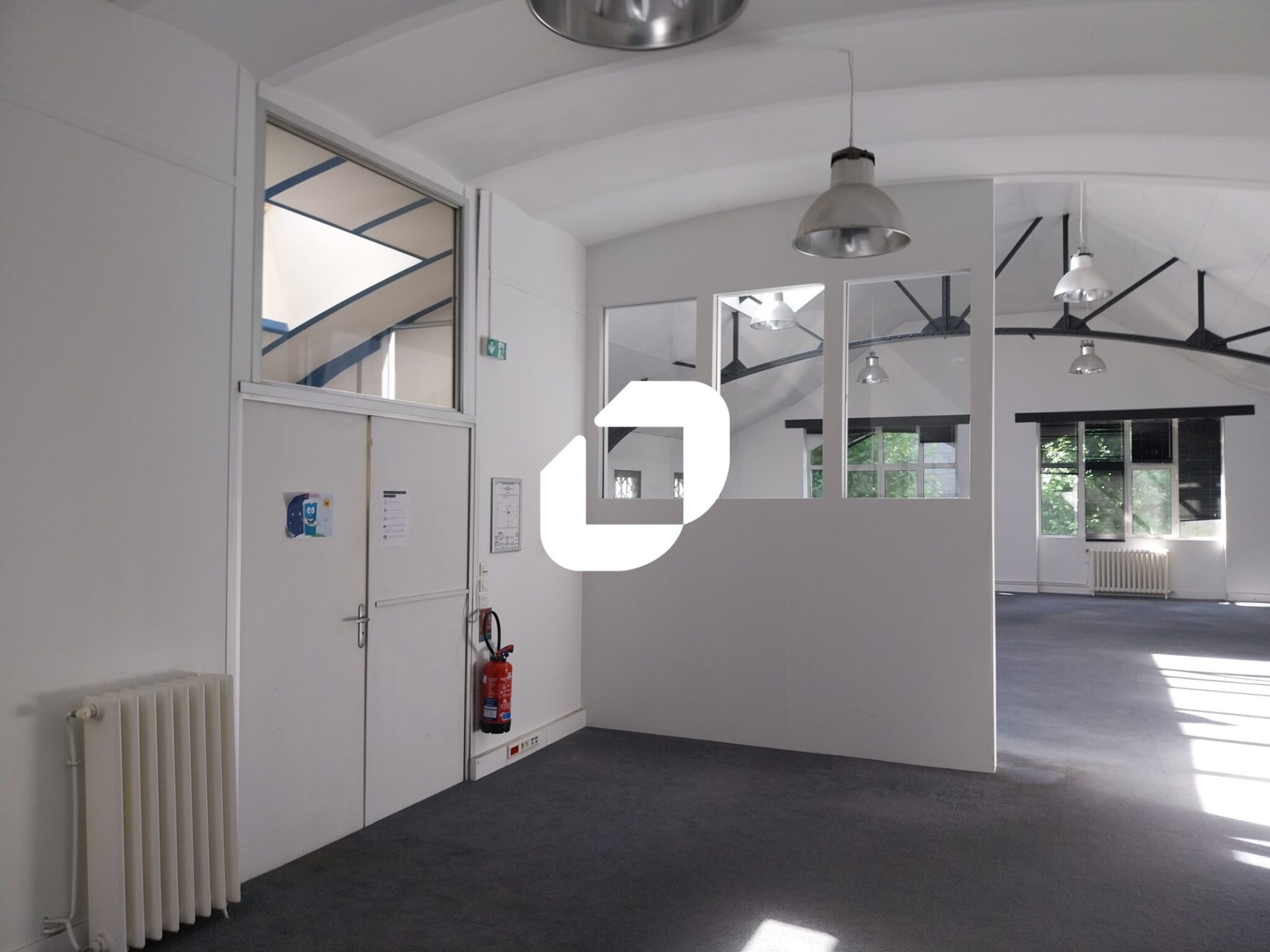 ILE DE NANTES - QUARTIER REPUBLIQUE - Immprove vous propose à la location un plateau de bureaux style industriel à proximité immédiate des commodités. Vous bénéficiez d'un plateau en open-space avec quelques bureaux, une cuisine et sanitaires privatifs. 6 places de stationnement.