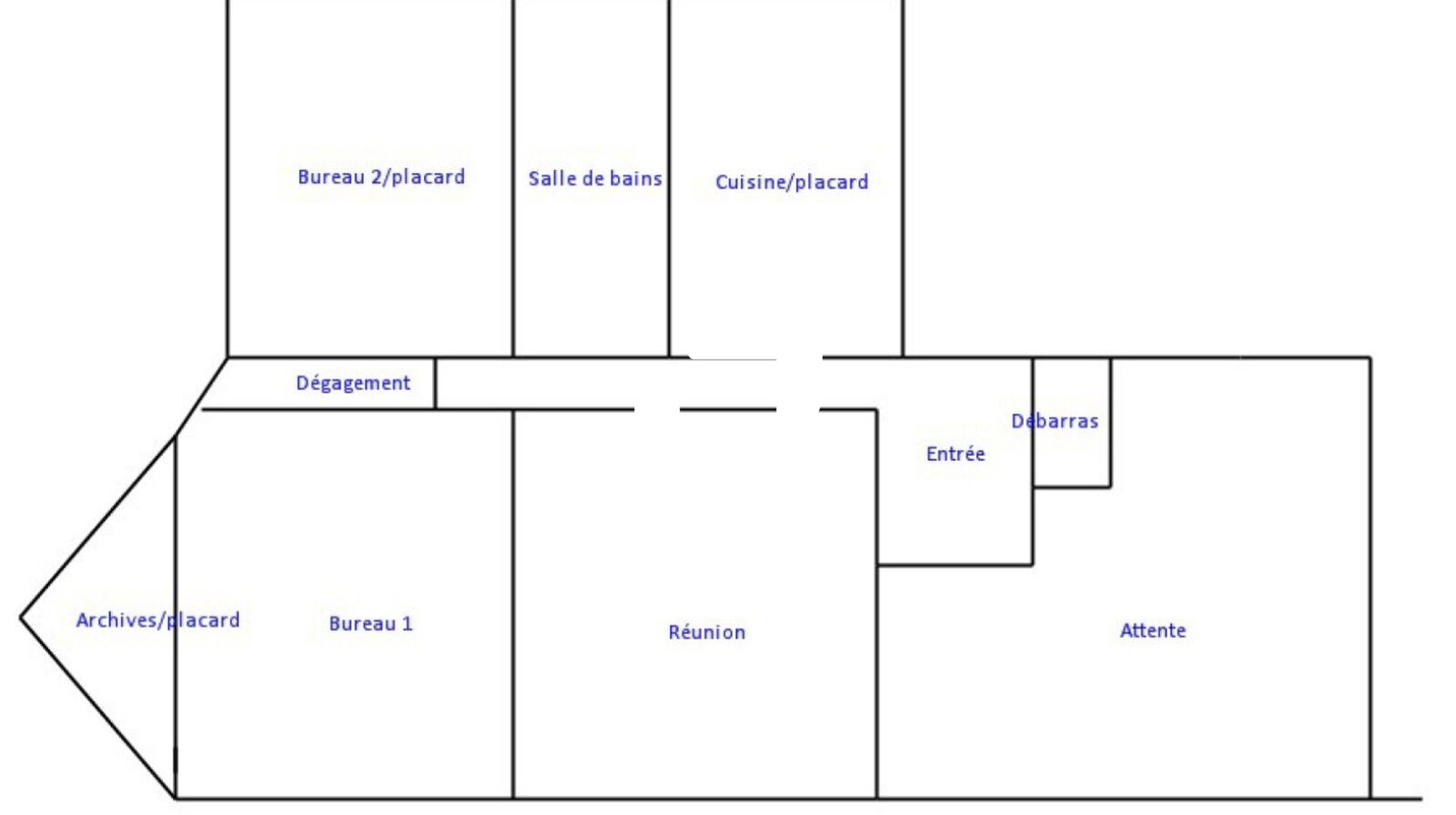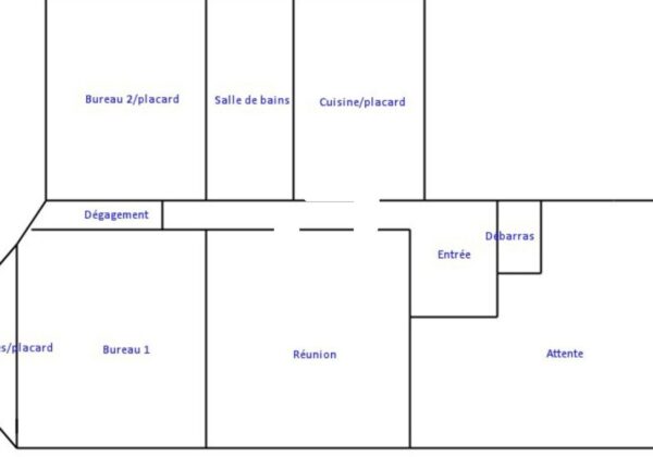 Vous profitez d'une entrée avec placard, un openspace, un couloir dessert 3 grands bureaux, un petit bureau, les sanitaires, une salle de bain et une cuisine aménagée.