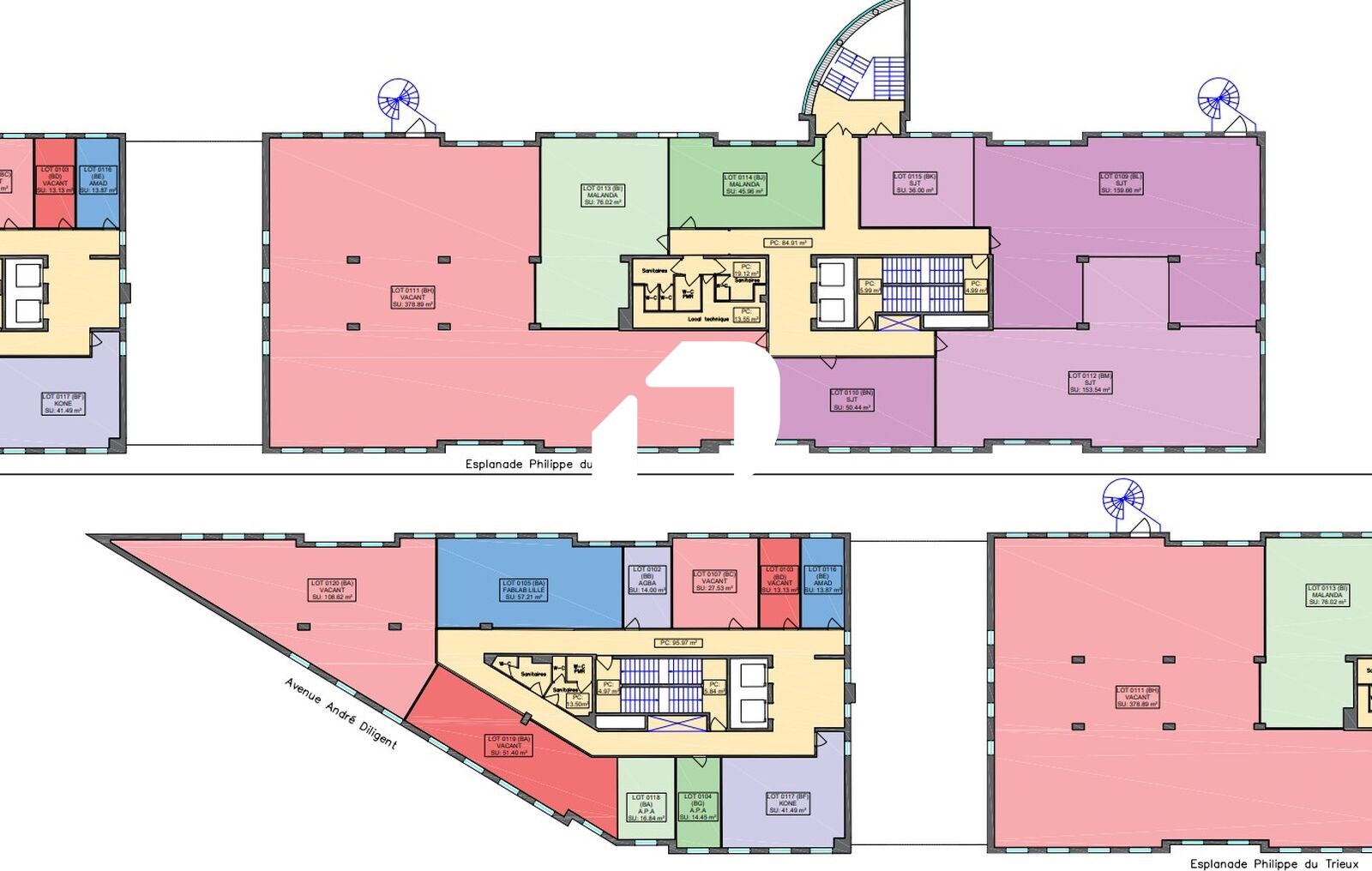 | Bureaux | 5ème étage | 1 765 m² | 105.00 | 23.00 |
