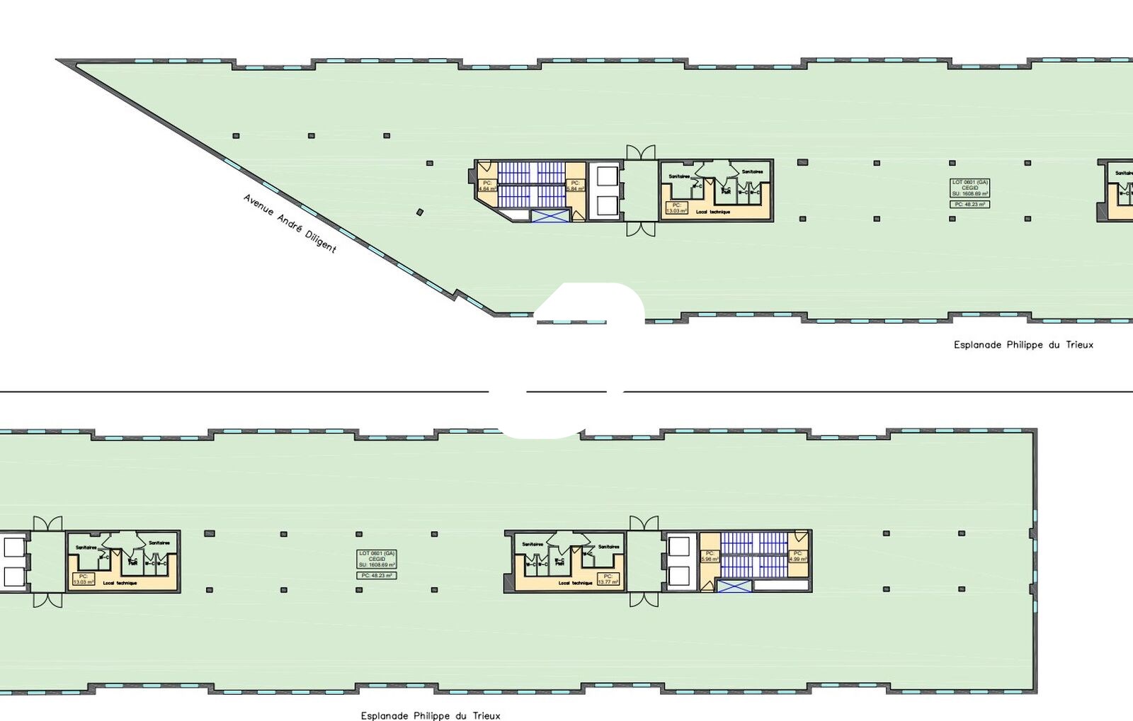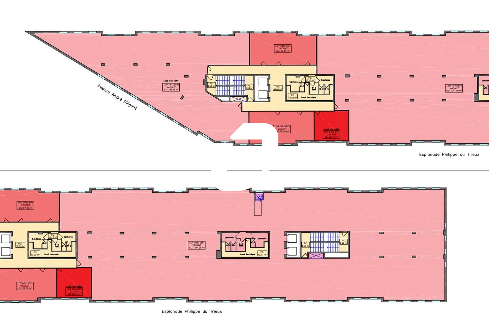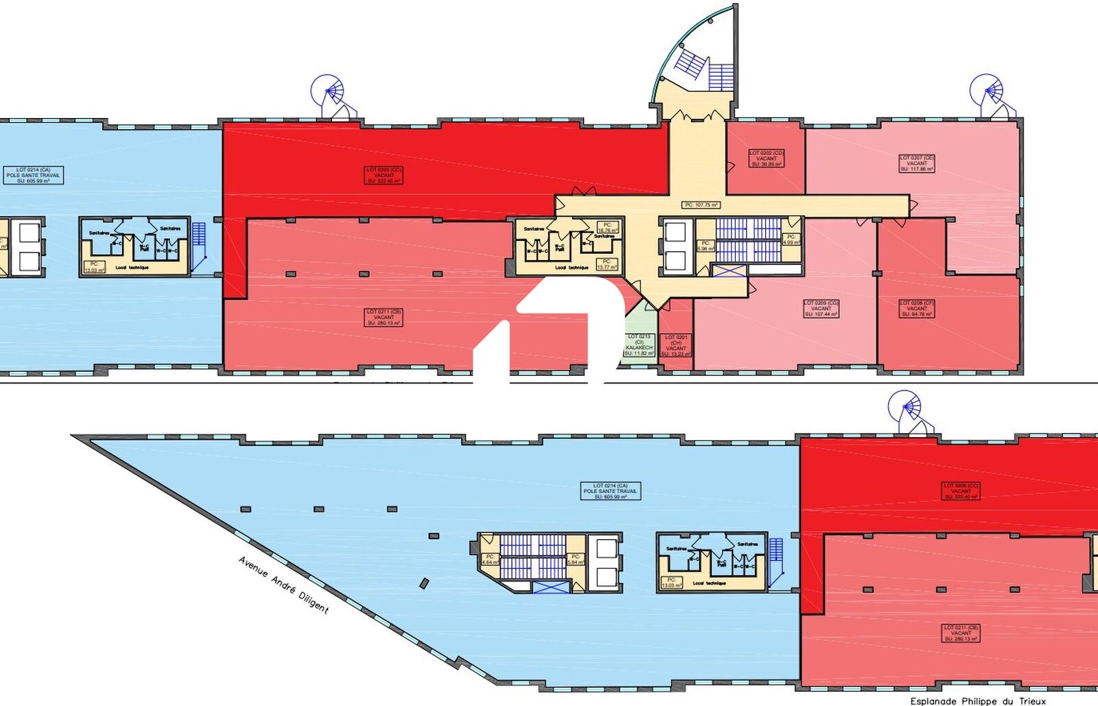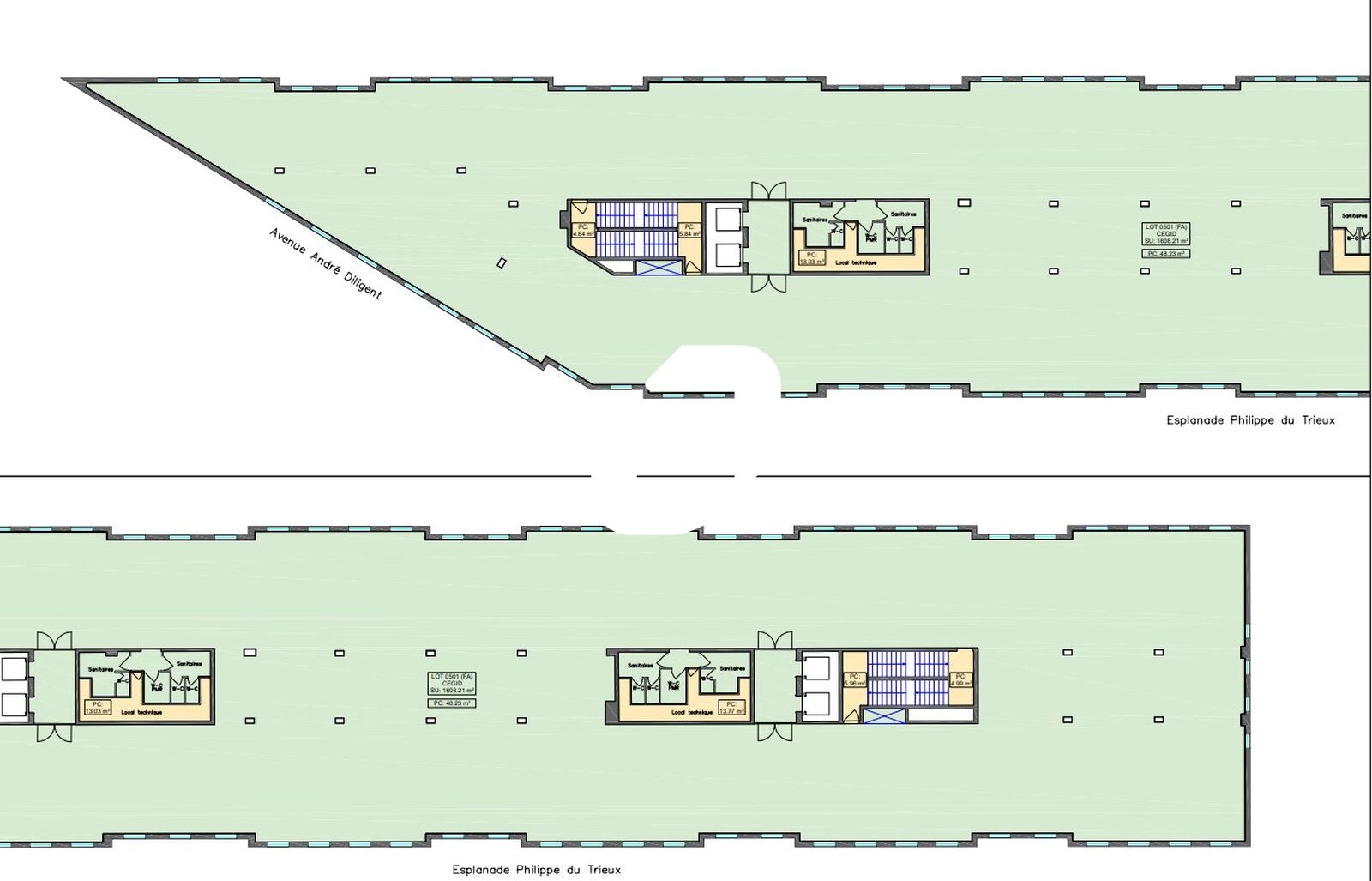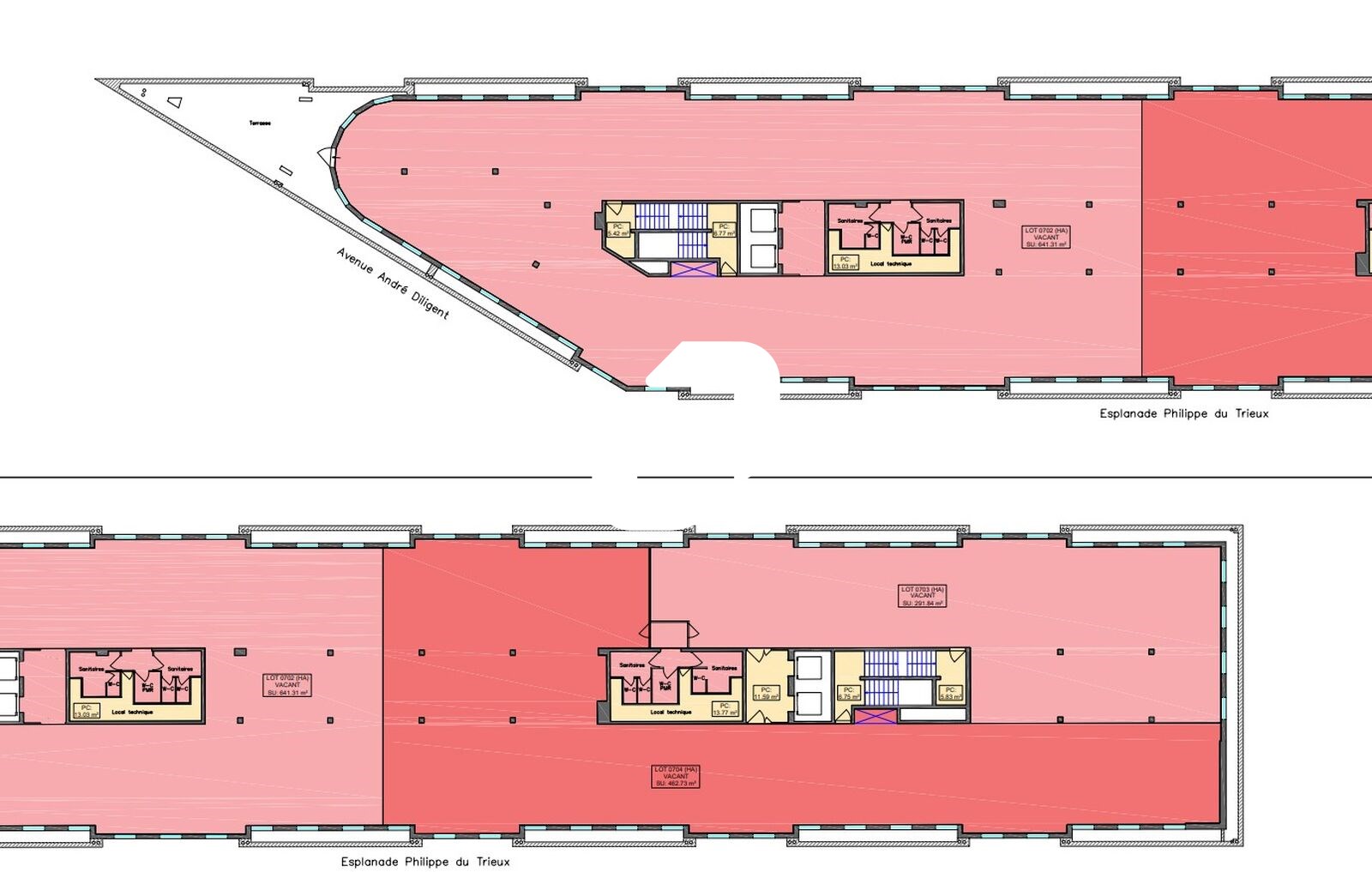 | Bureaux | 6ème étage | 1 765 m² | 105.00 | 23.00 |