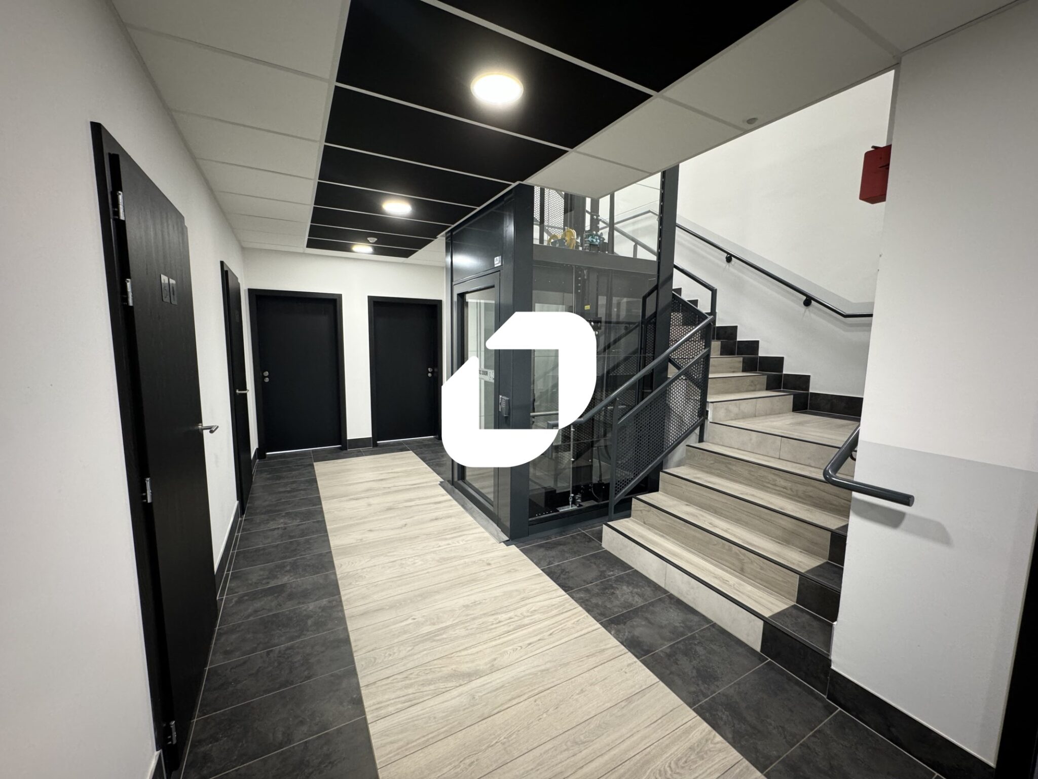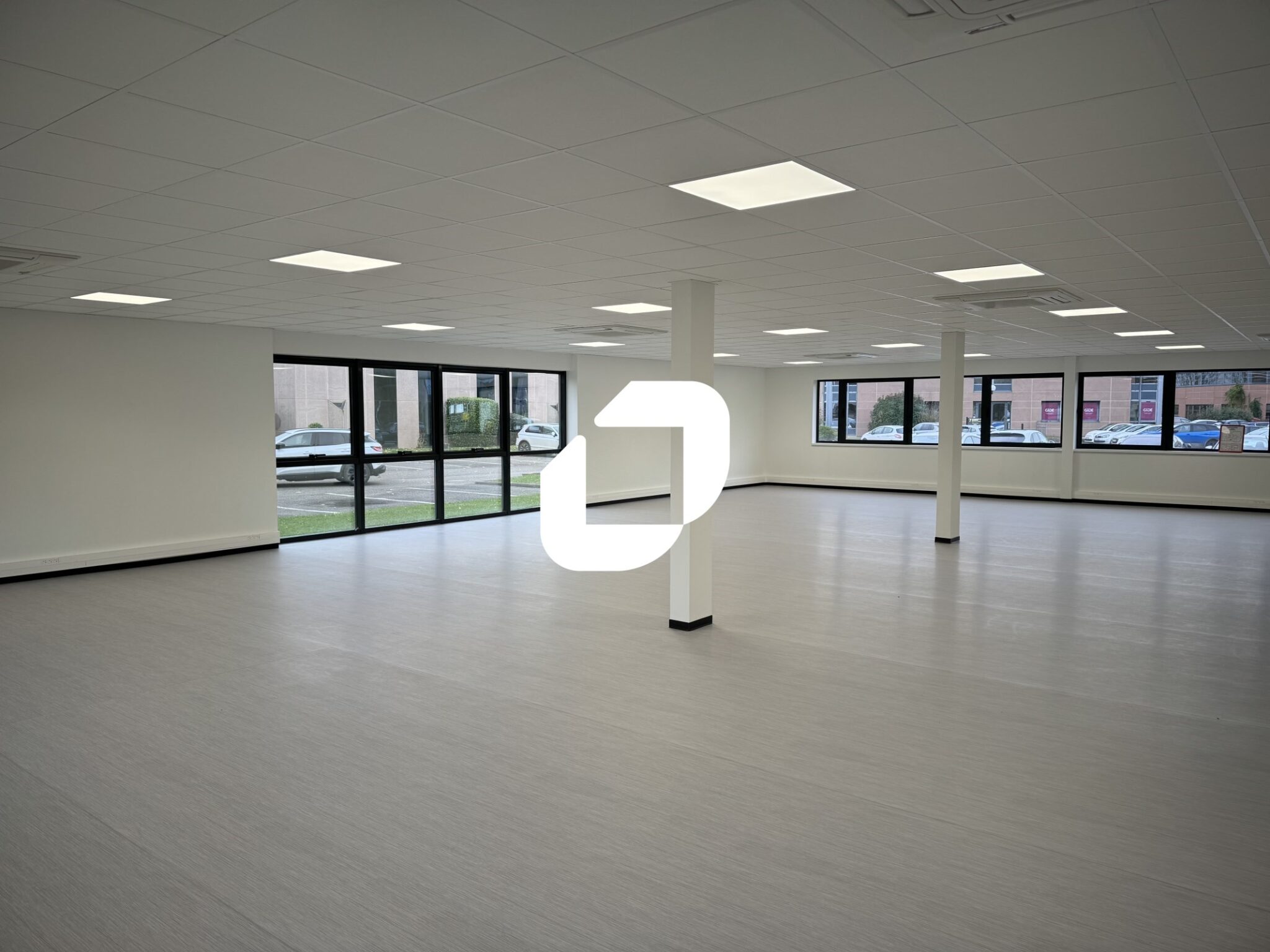 . Espace ouvert. Faux plafond avec luminaires encastrés
