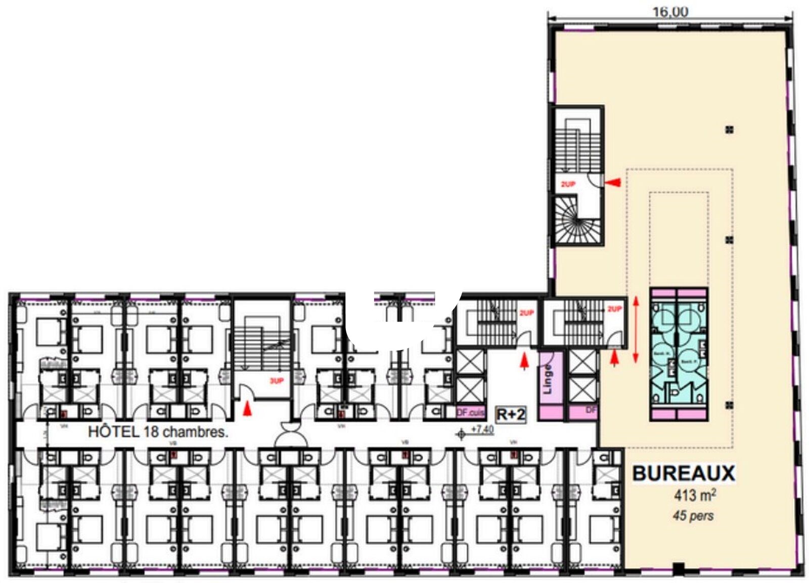 | Bureaux | 2ème étage | 454 m² | 240.00 | 27.00 |