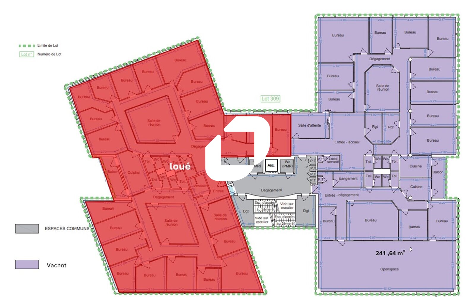 | Bureaux | 1er étage | 241 m² | 120.00 | 33.34 |