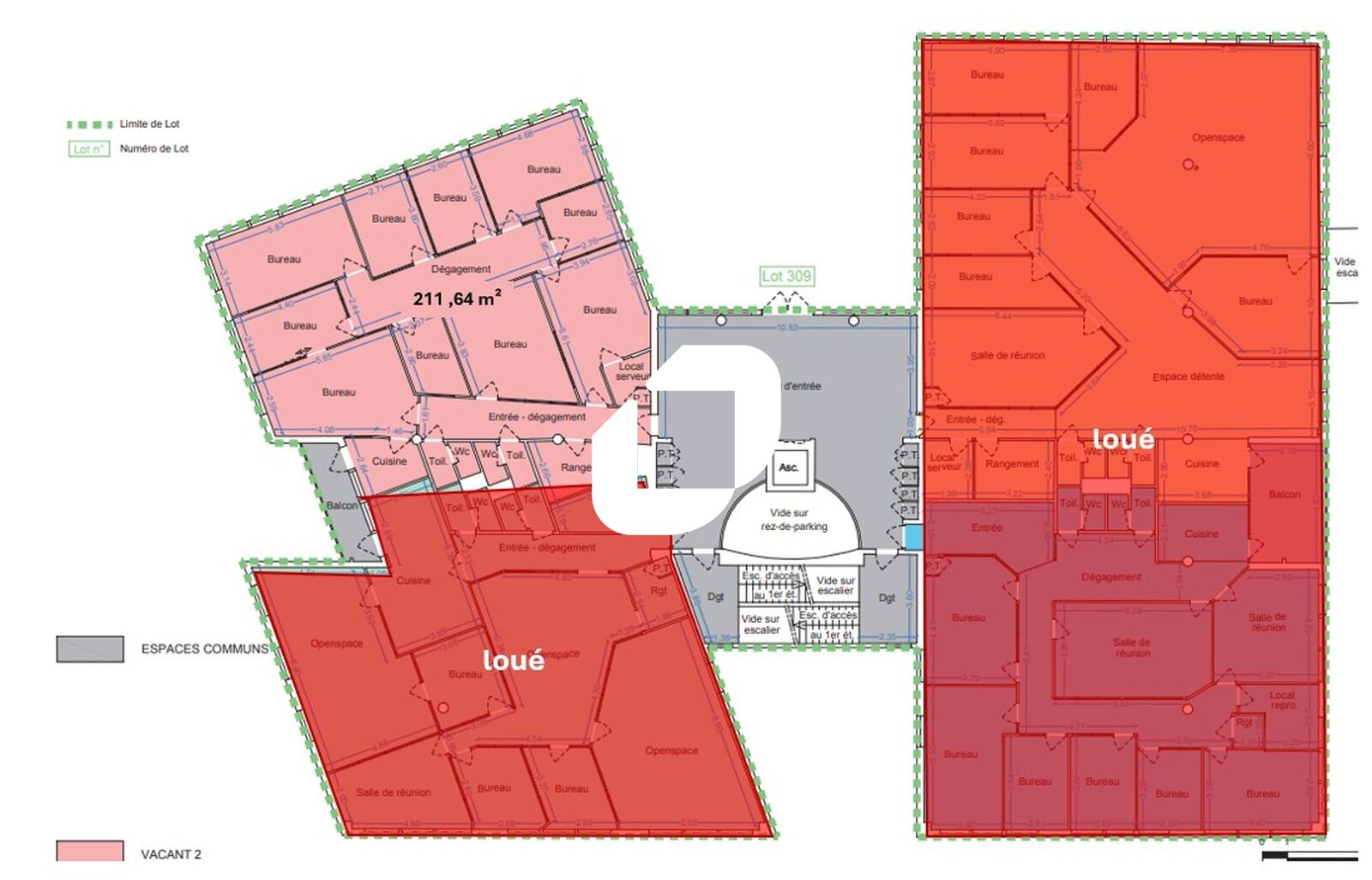 Immprove vous propose plusieurs surfaces de bureaux à la location, allant de bureaux entièrement cloisonnés avec kitchenette et sanitaires privatifs à un plateau nu, modulable selon vos besoins. Des places de stationnement peuvent également être louées en complément.