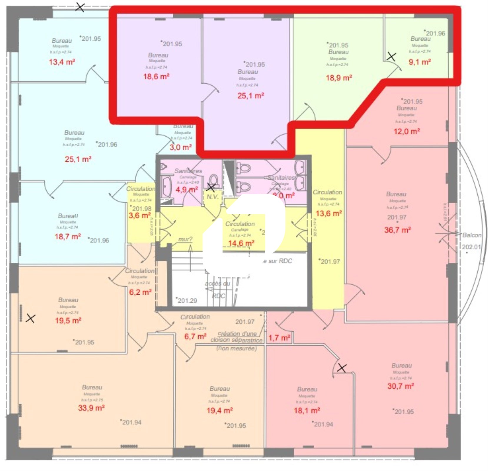 Bureaux | 1er étage | 74 m² | 110.00 | 35.00 |