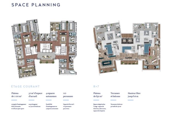 Hauteur libre de 2,70 m en étage courant, 6 m pour le R+8