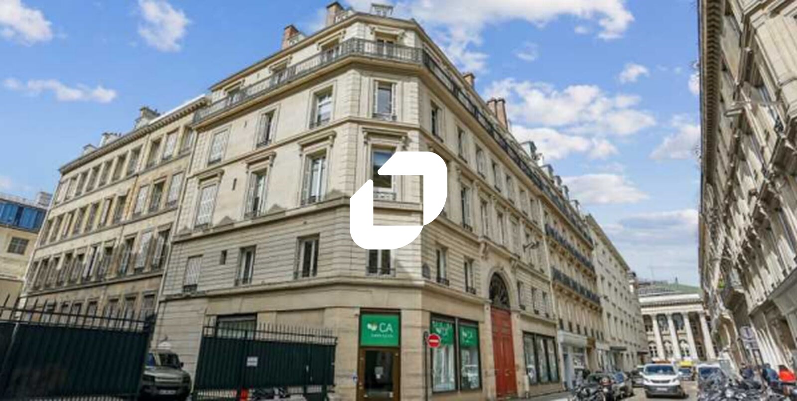Immeuble situé dans le quartier Vivienne, à proximité de la mairie du 2ème arrondissement, métro "Bourse", dans le Quartier Central des Affaires.