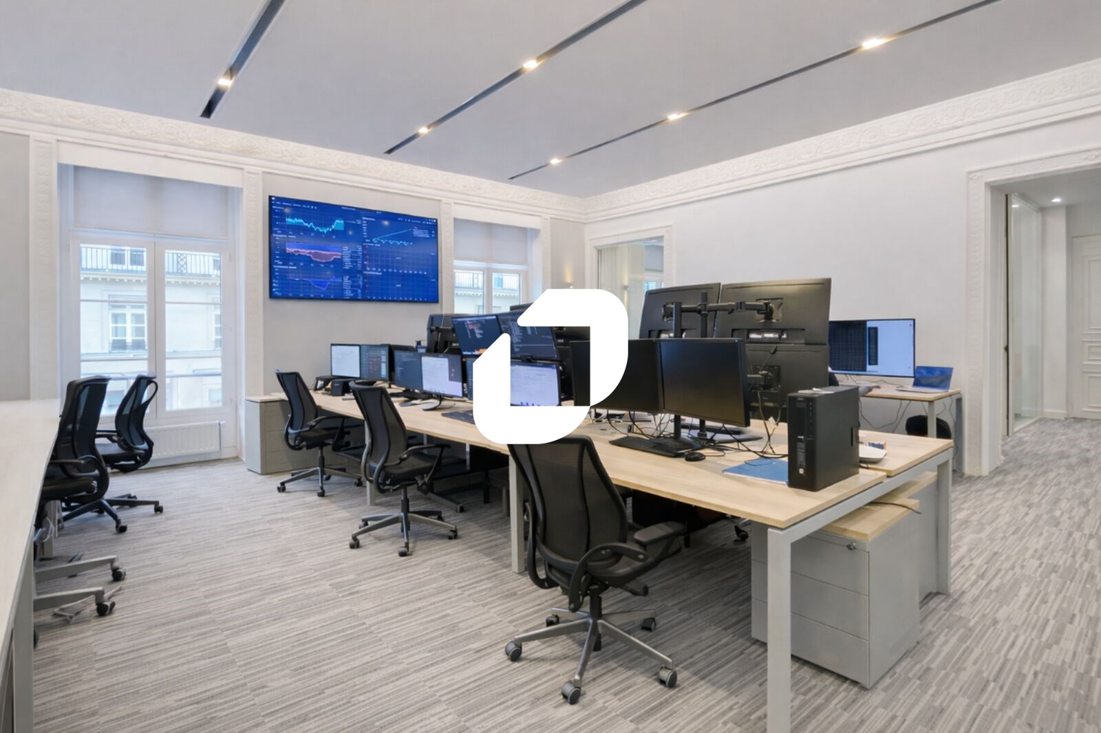 IMMPROVE vous propose une surface de bureaux Deskeo en prestation de services : 32 postes de travail, deux salles de réunion de 8 places, ainsi qu’un espace détente/cuisine. Une terrasse extérieure complète les bureaux.