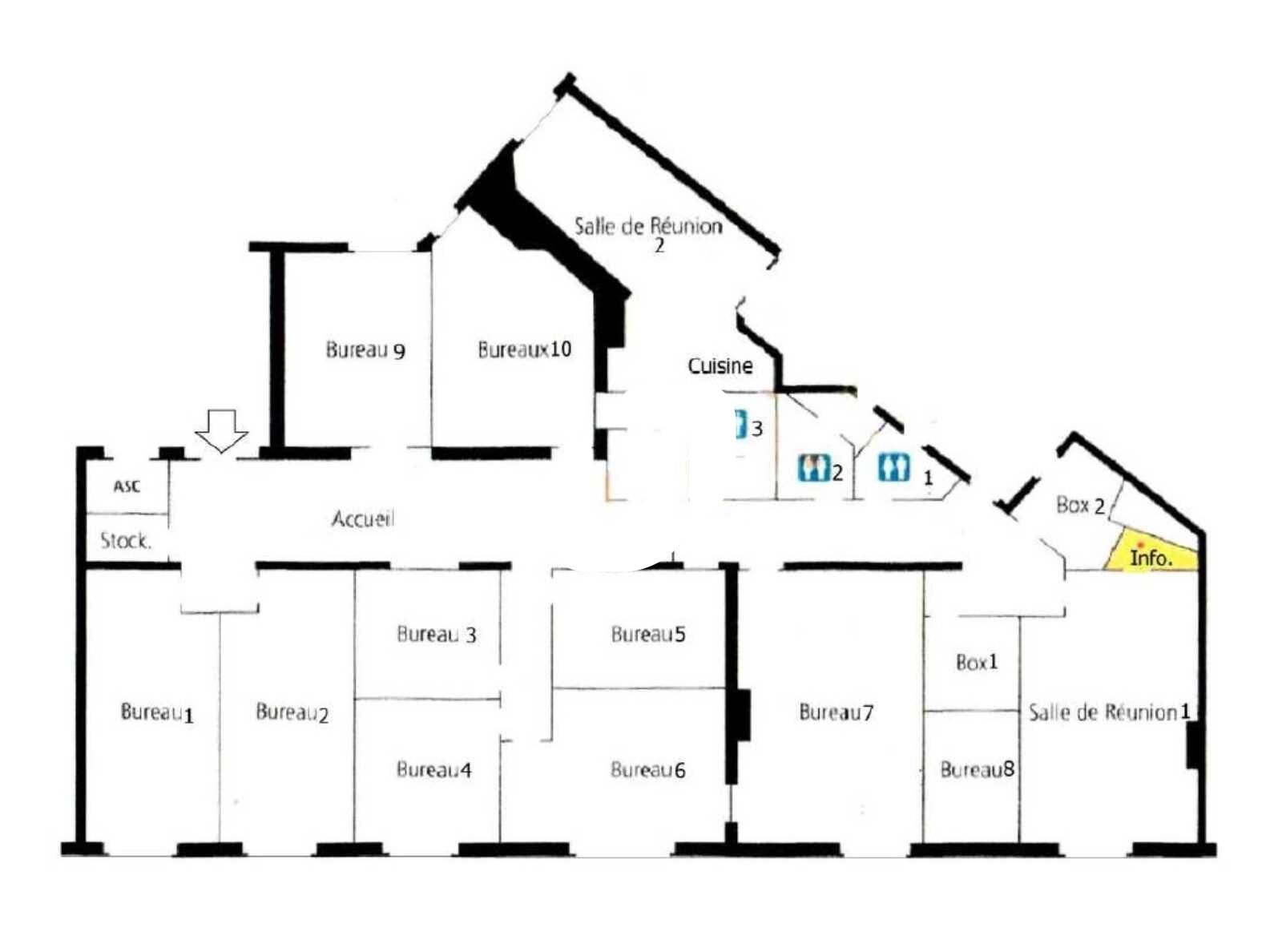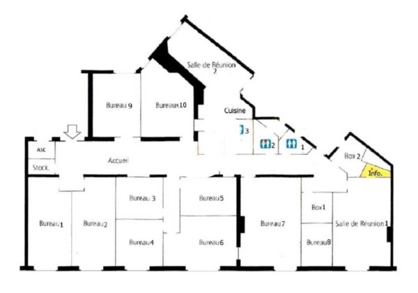 . Cloisonnement : 11 bureaux, 2 salles de réunions