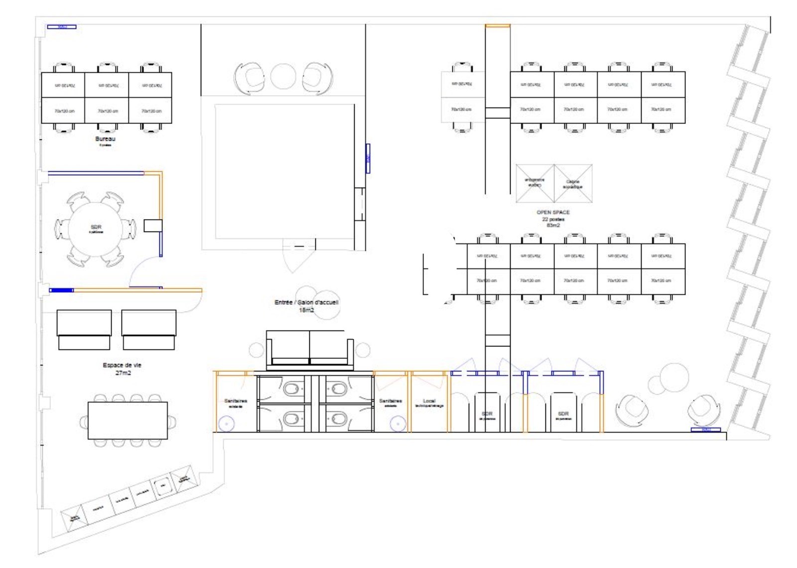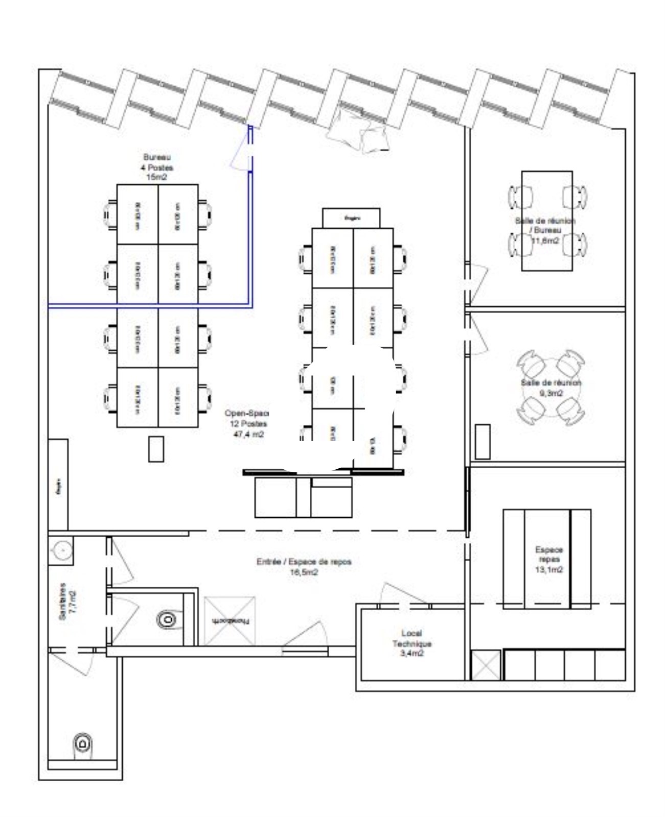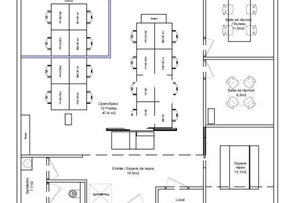 . 3 espaces de travail pour 4 personnes chacun