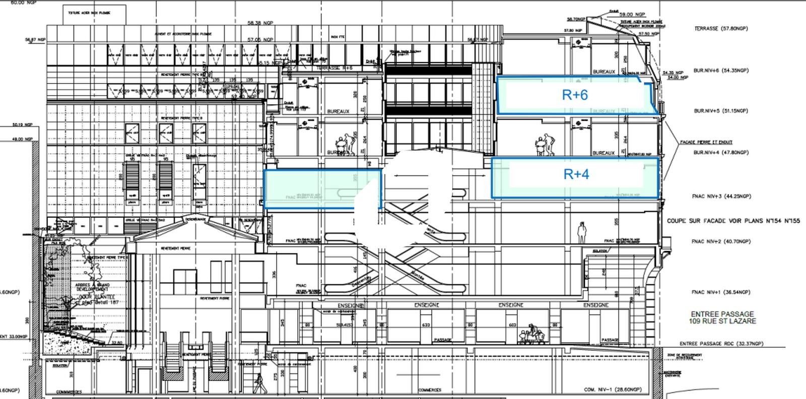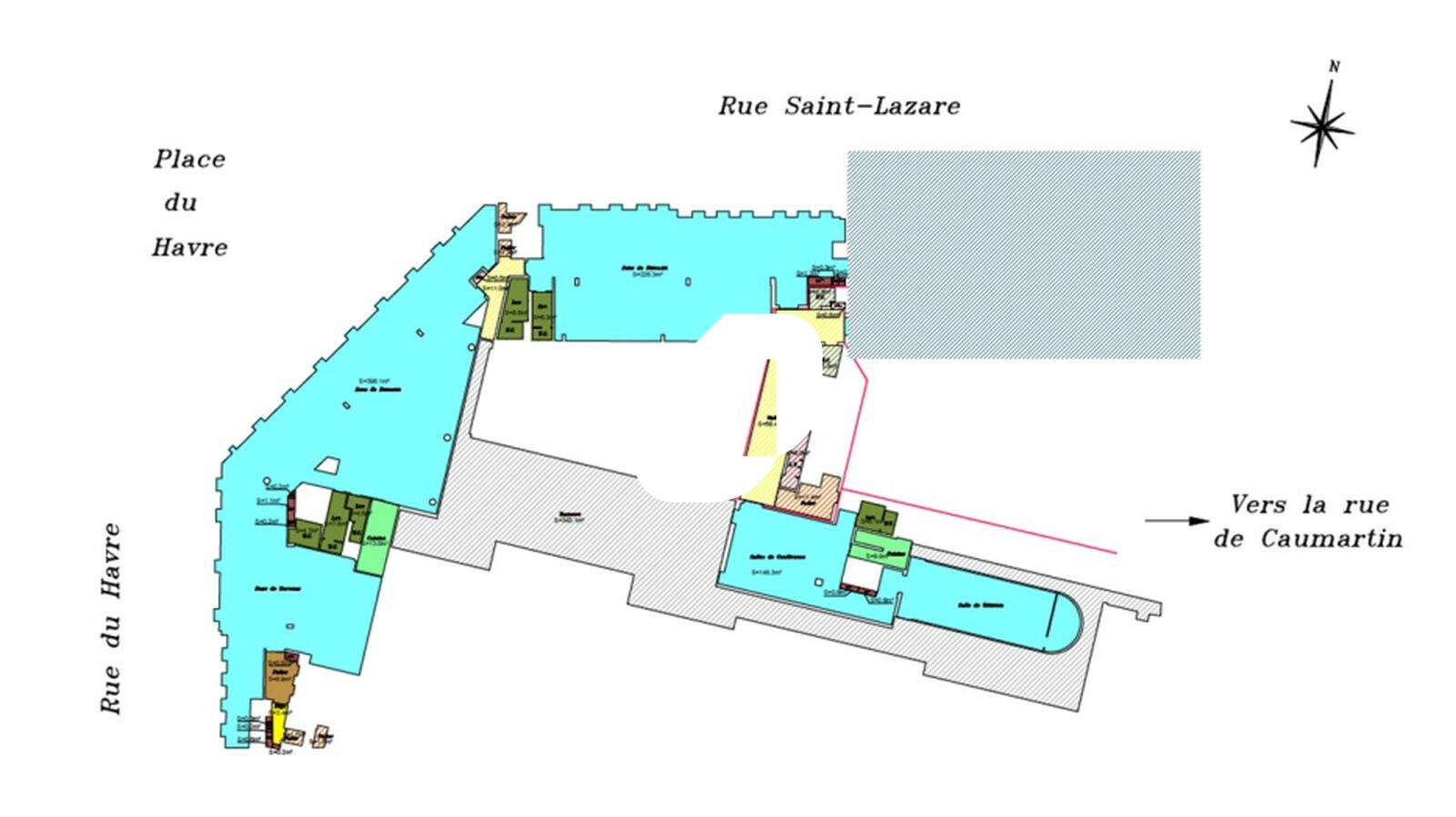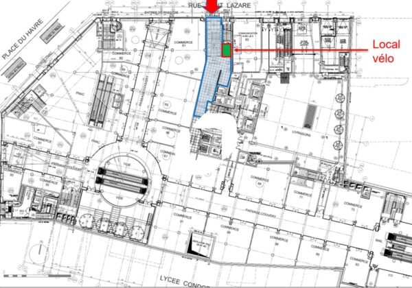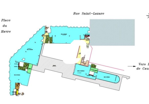 . Double entrée 107 rue Saint Lazare / 12 rue du Havre. Hall d'entrée : projet de rénovation du hall de la rue du Havre à l'étude
