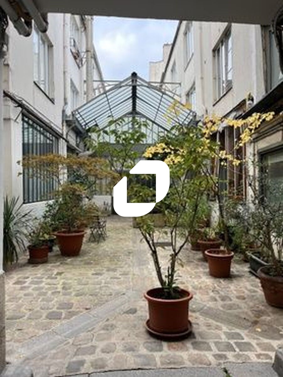 Bureaux à louer à Paris 11 avec une cour arborée charmante, surface en duplex avec escalier en colimasson, bureaux cloisonnés et open space, mezzanine, beaux volumes. Opportunité idéale pour votre entreprise.