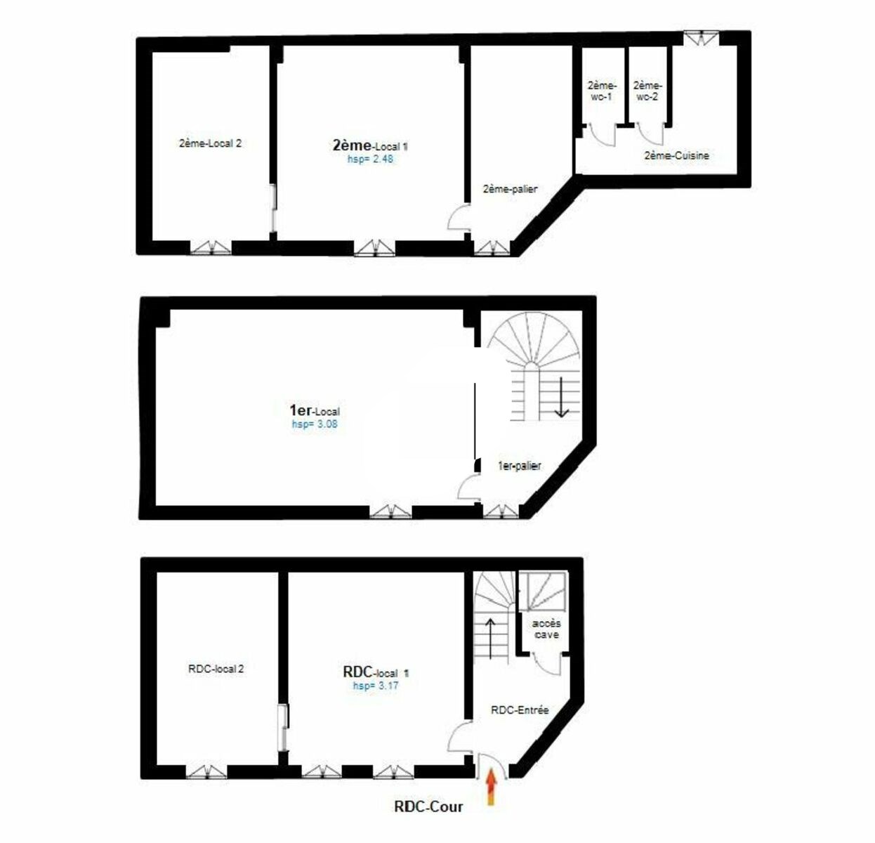 . Configuration actuelle (soumis à modifications selon travaux validés) :. RDC : 2 pièces