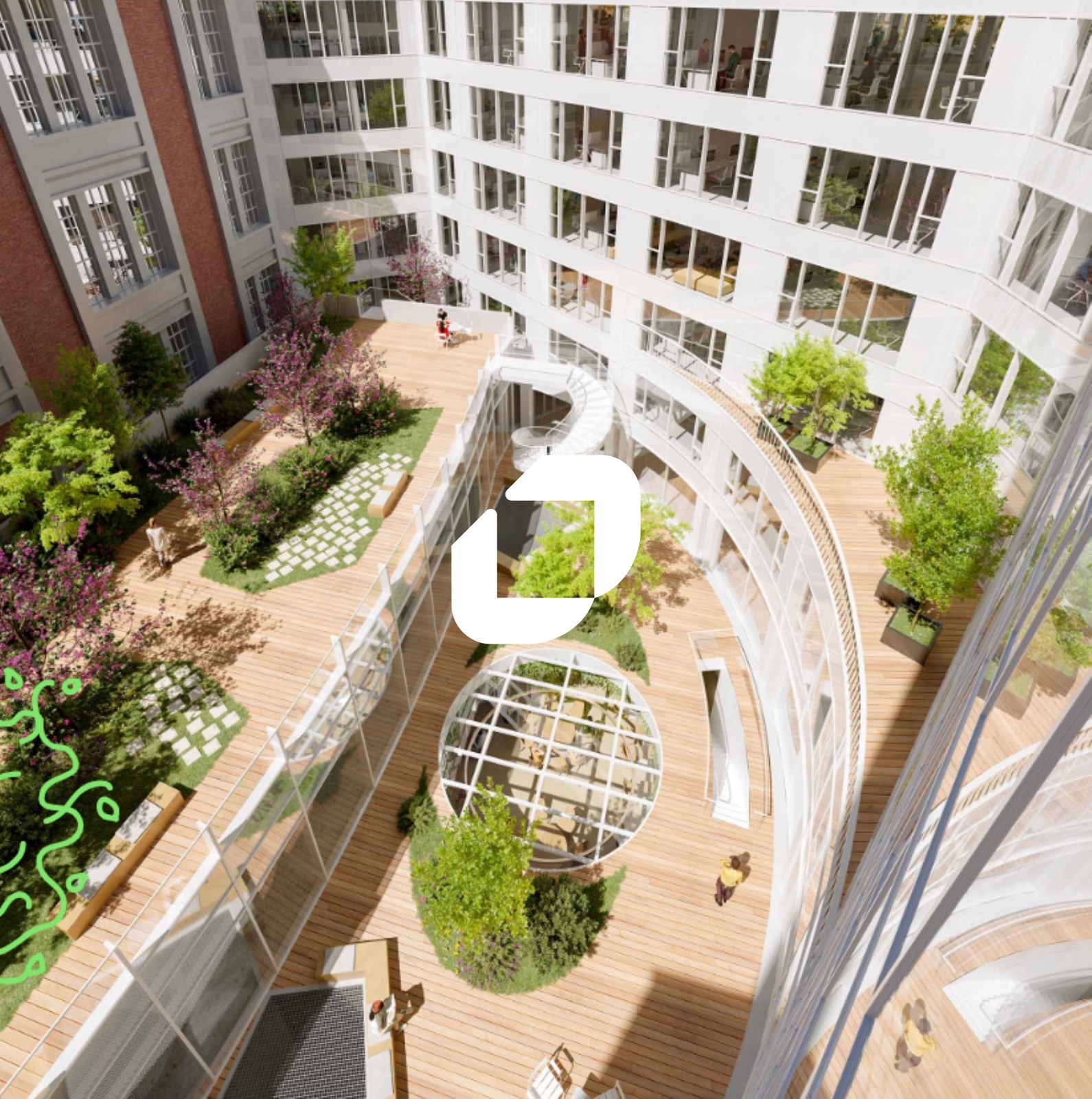 . Labels environnementaux ambitieux : HQE Excellent, Breeam Rénovation Excellent, Well Gold, Wiredscore Gold Locaux aménagés en :