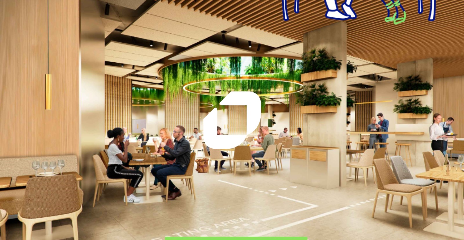 . N-1 Fooding Area (540 repas/j) ou 950 m² pour travailler et Fitness + Vestiaires