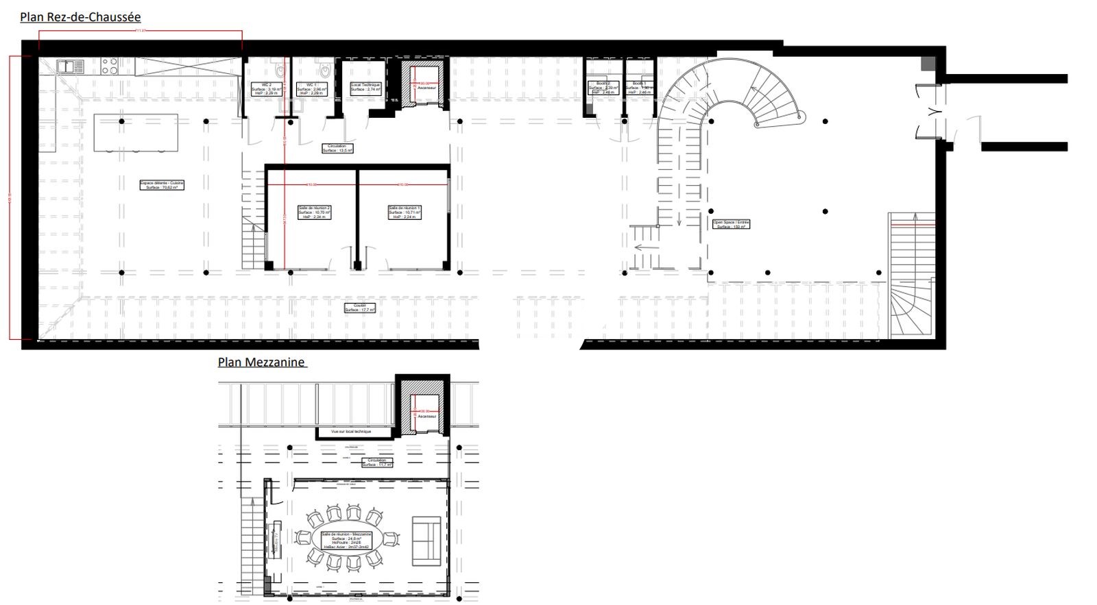 . 1er et 2ème étage aménagé en bureau ouvert et cloisonné