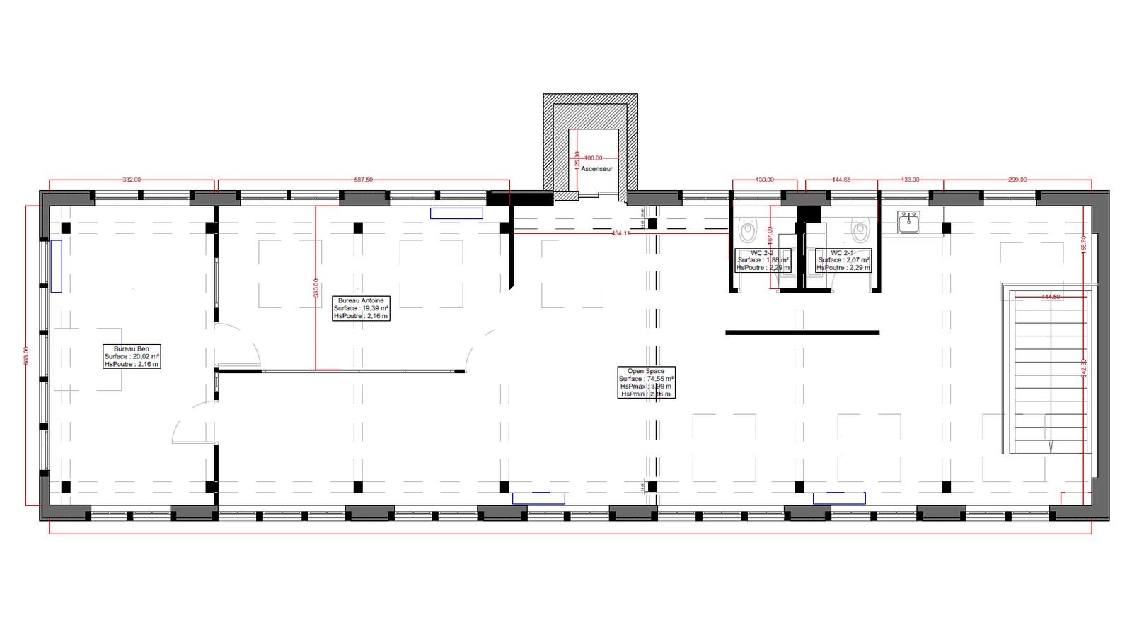 | Bureaux | 1er étage | 113 m² | 475.00 | 14.60 |