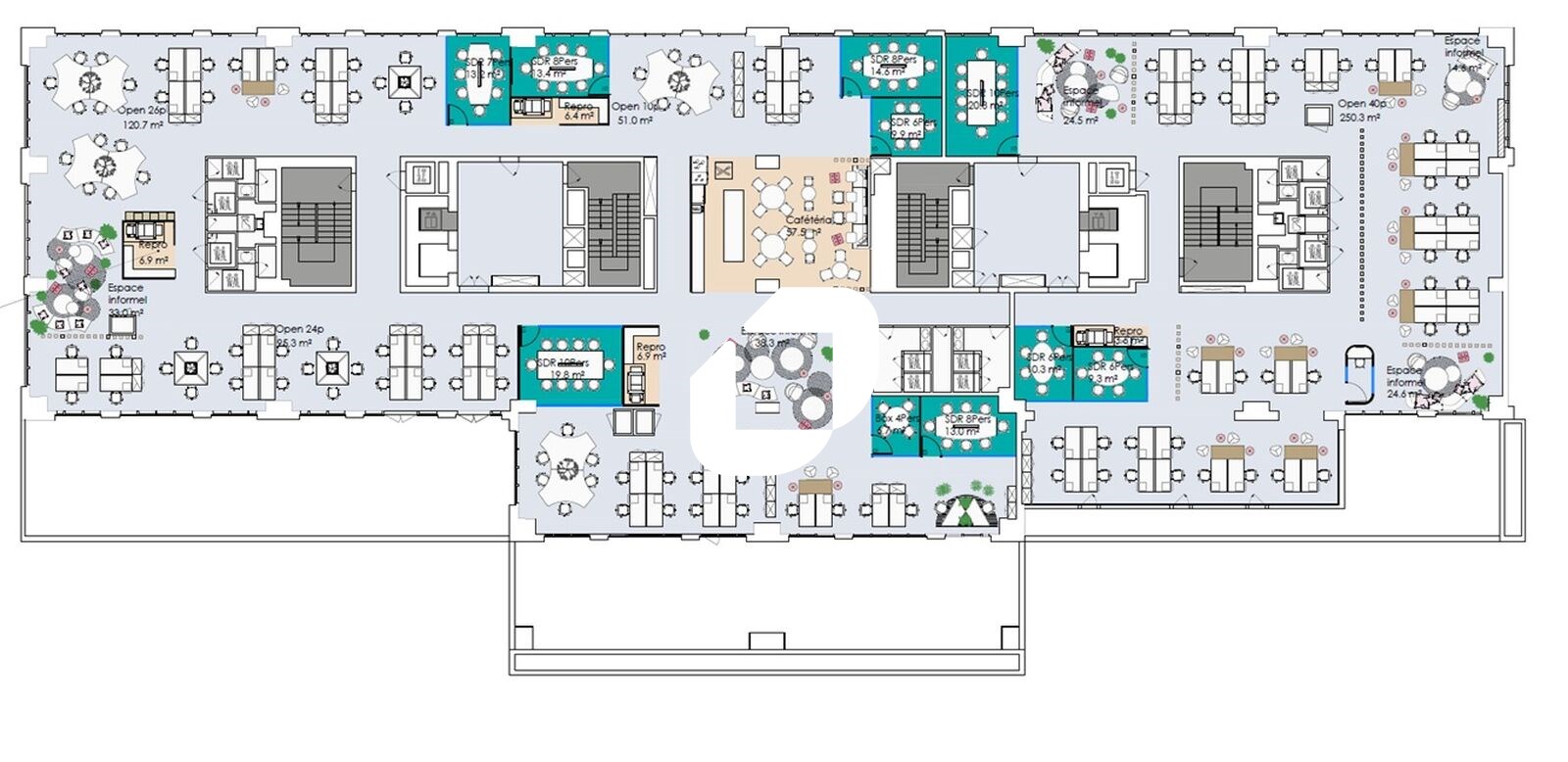 | Bureaux | 3ème étage | 938 m² | 450.00 | 66.00 |