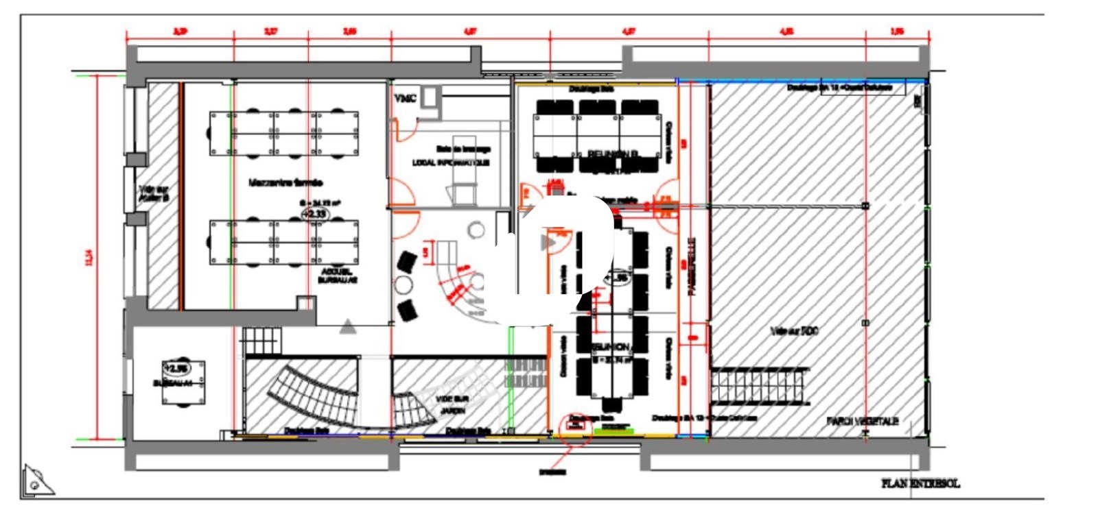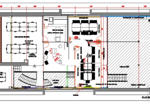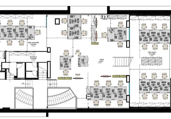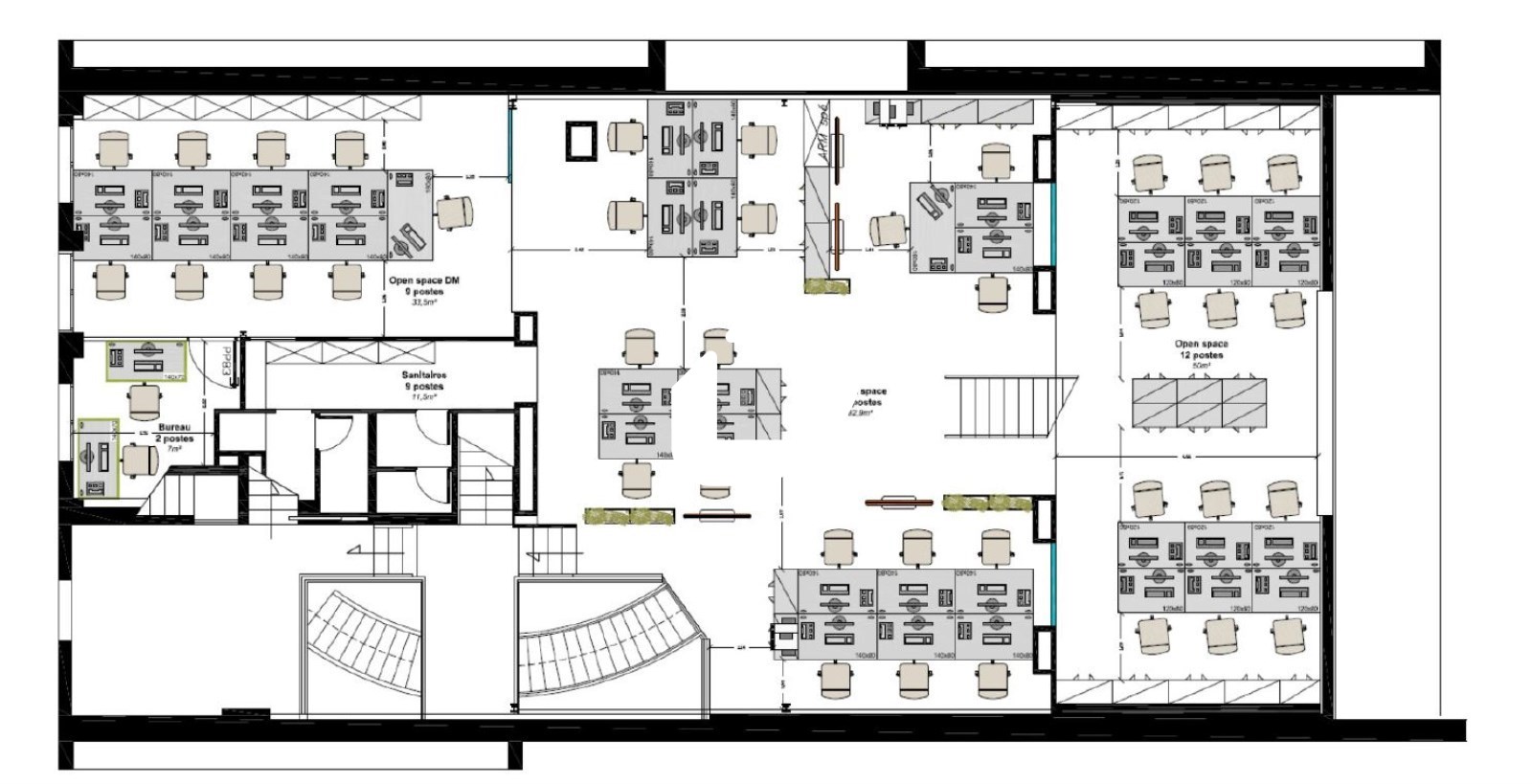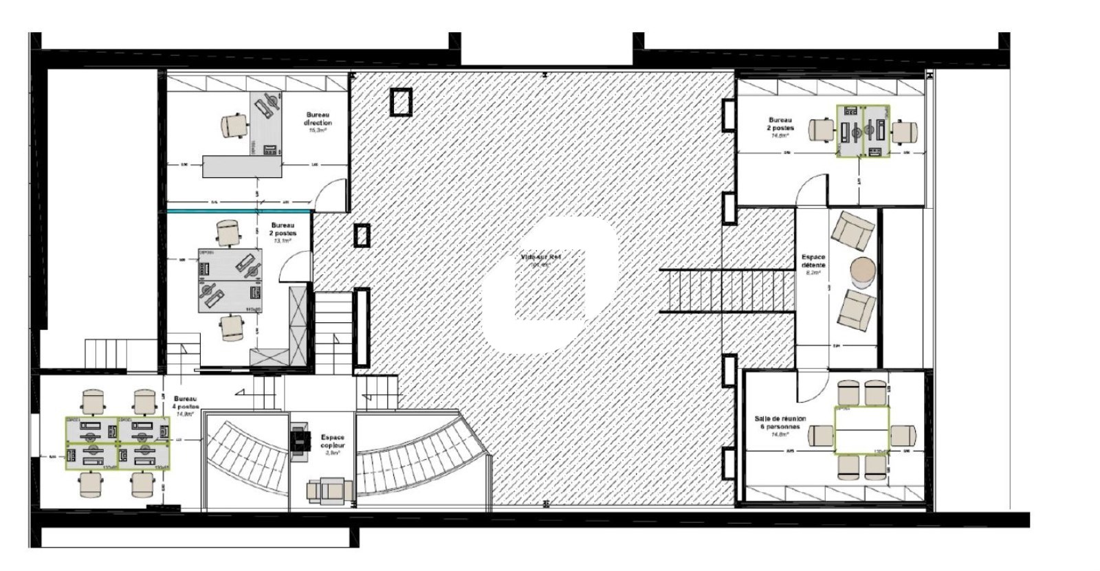 . Espaces ouverts et de bureaux cloisonnés