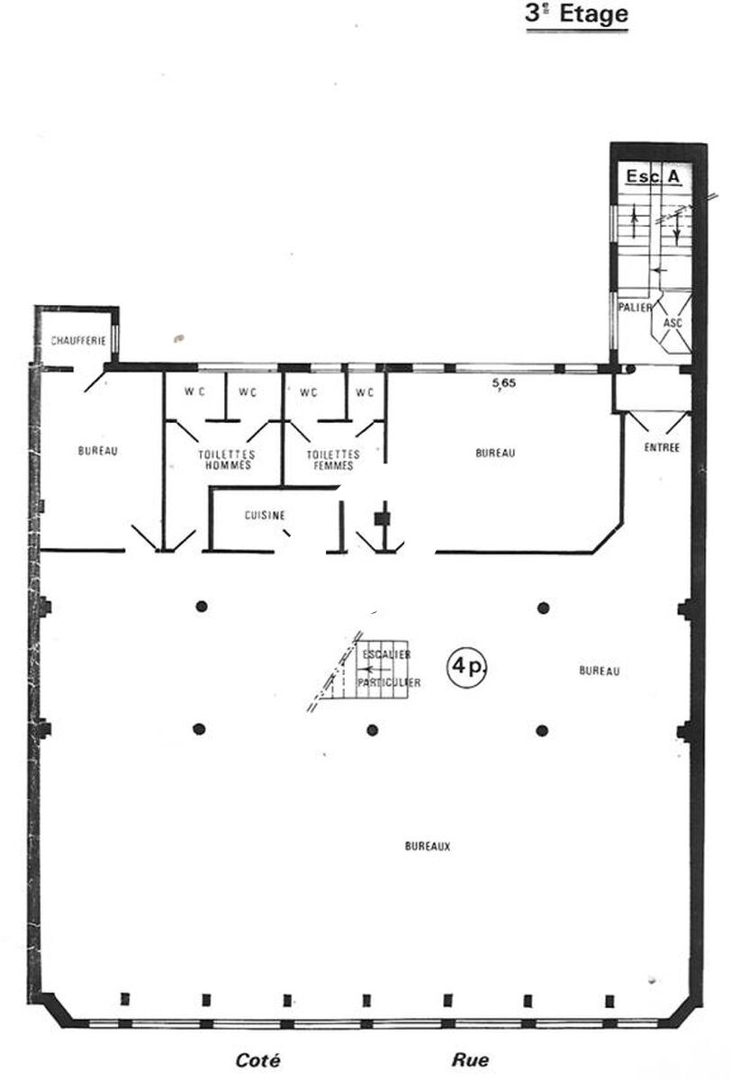 . 3eme étage : accueil, grand open space, 3 bureaux