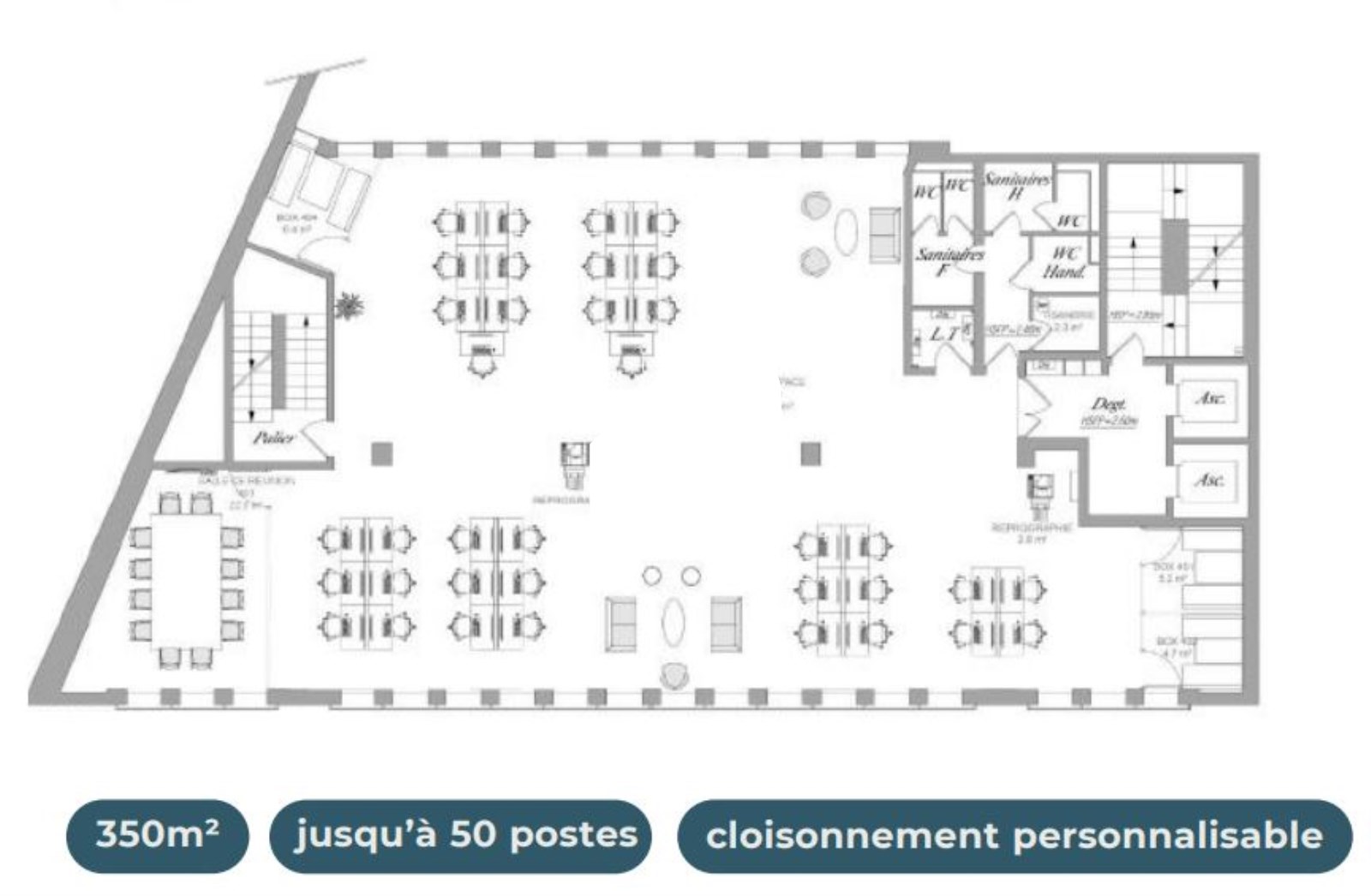 • 1 espace de coworking avec phones box
