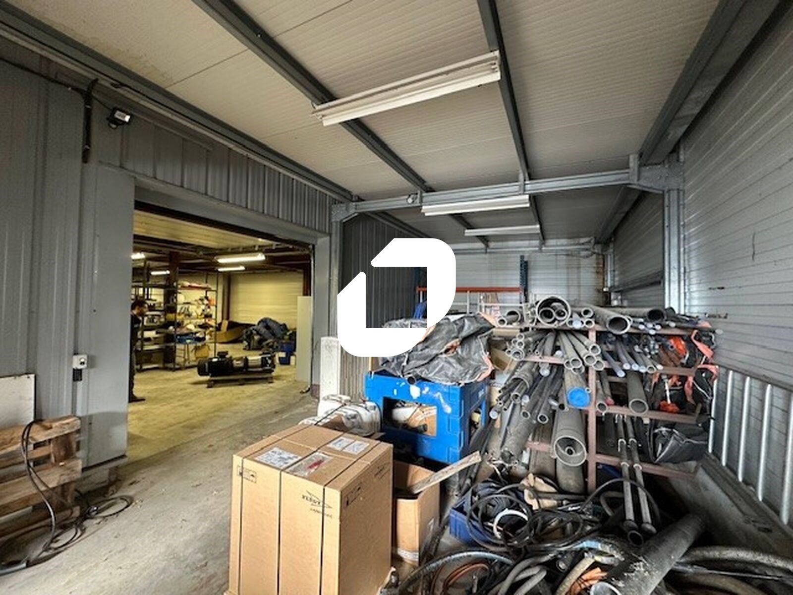 . Façade en bardage. Accès véhicules légers et poids lourds