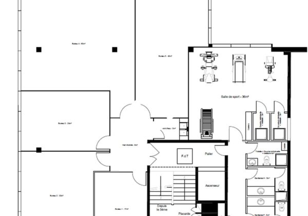 Les surfaces sont en très bon état, climatisées, et proposent l’accès à plusieurs espaces partagés : kitchenette, salle de fitness équipée, douches et sanitaires.