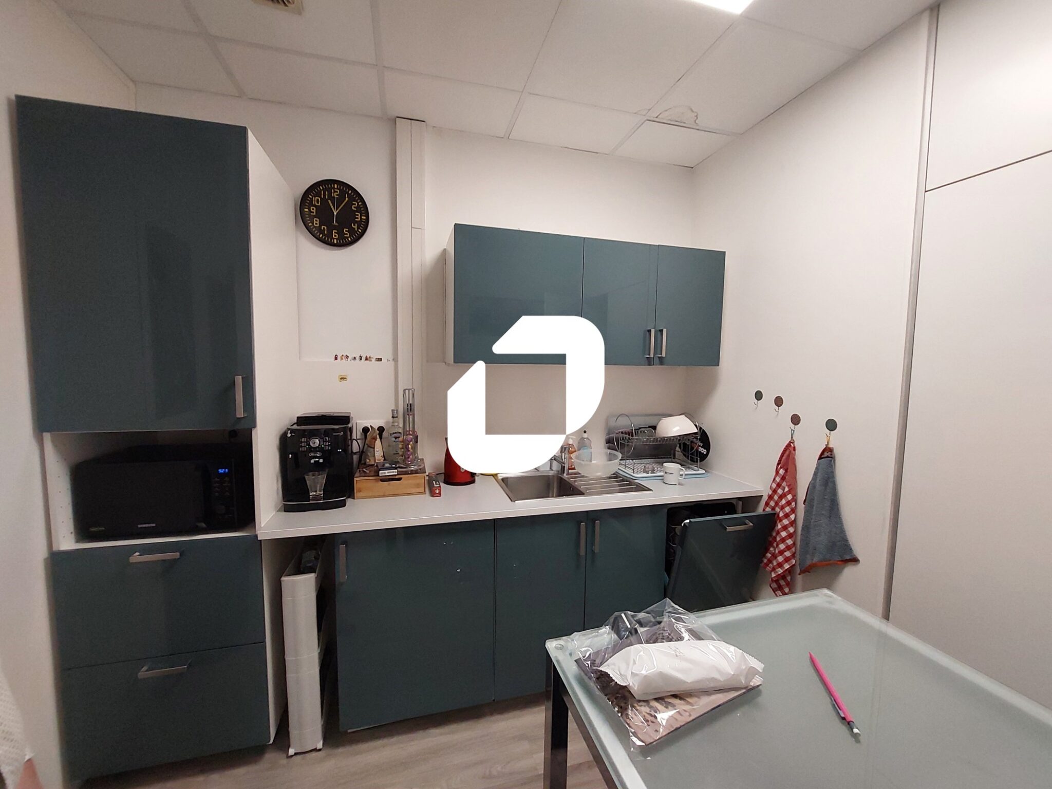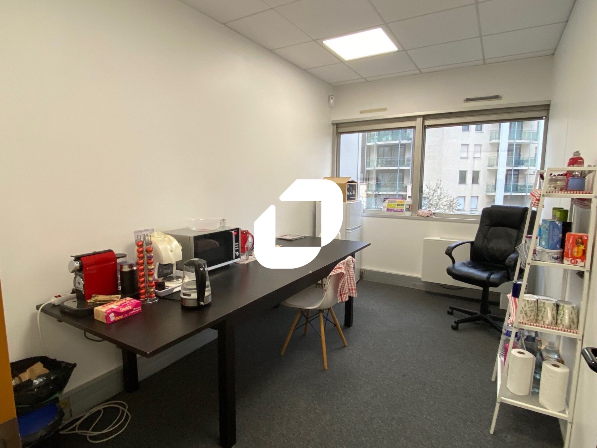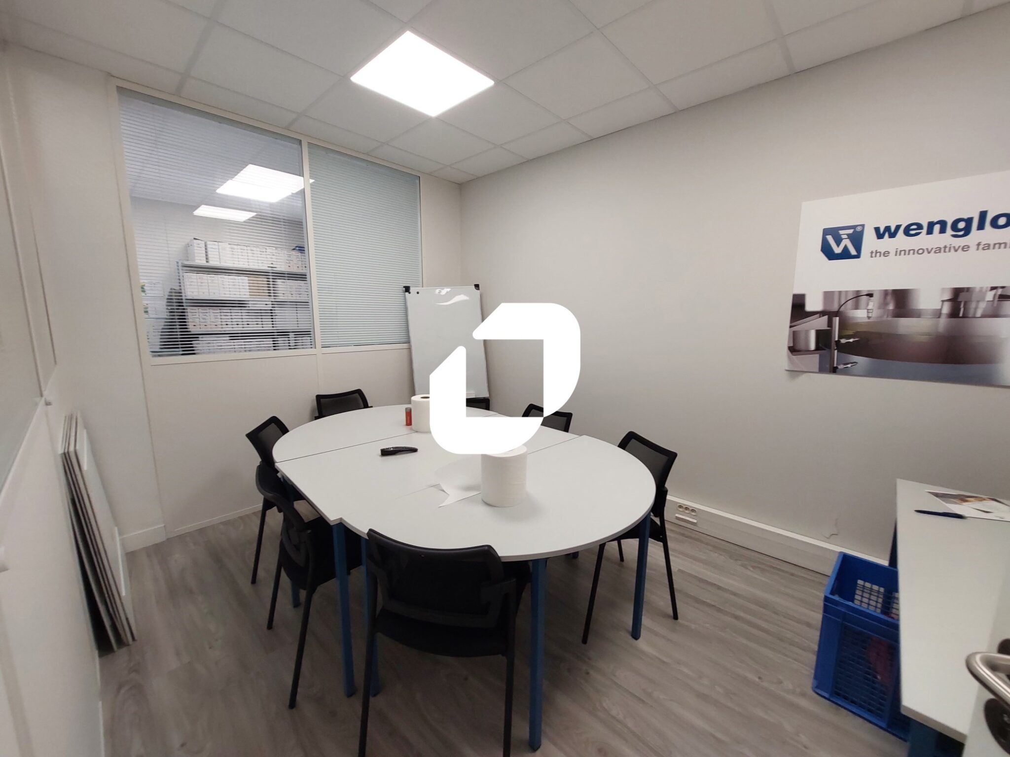 . Sol en parquet vinyle ou moquette, faux plafonds avec pavés LED