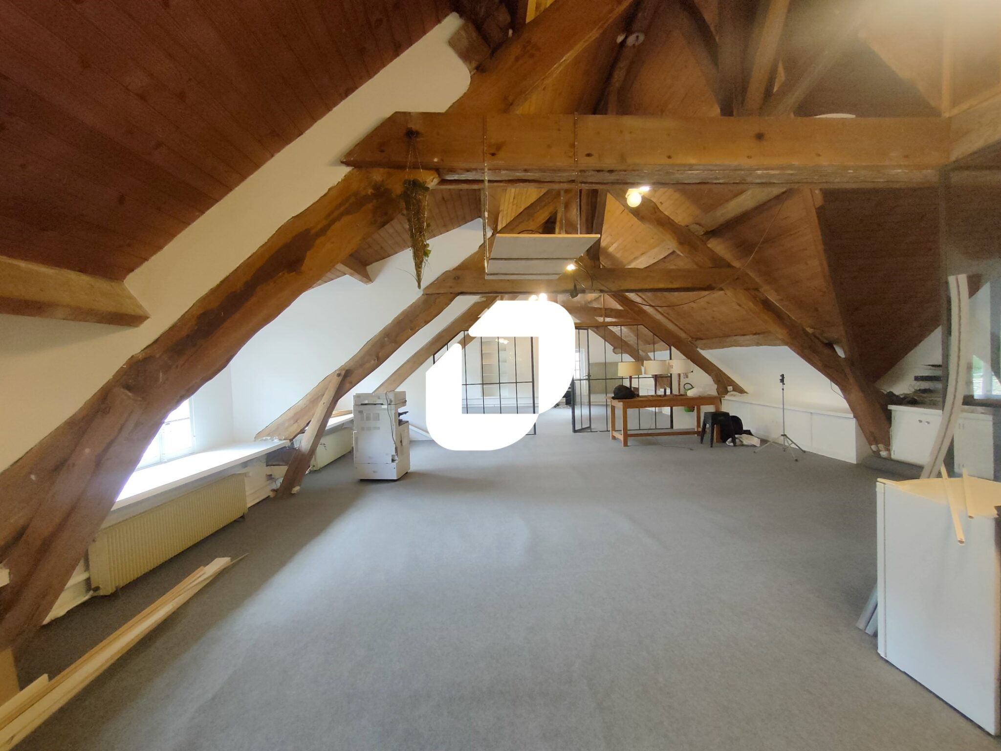 La surface ouverte est sous pente et est située au 1er étage d’un immeuble classé monument historique. Un rafraichissement est prévu.