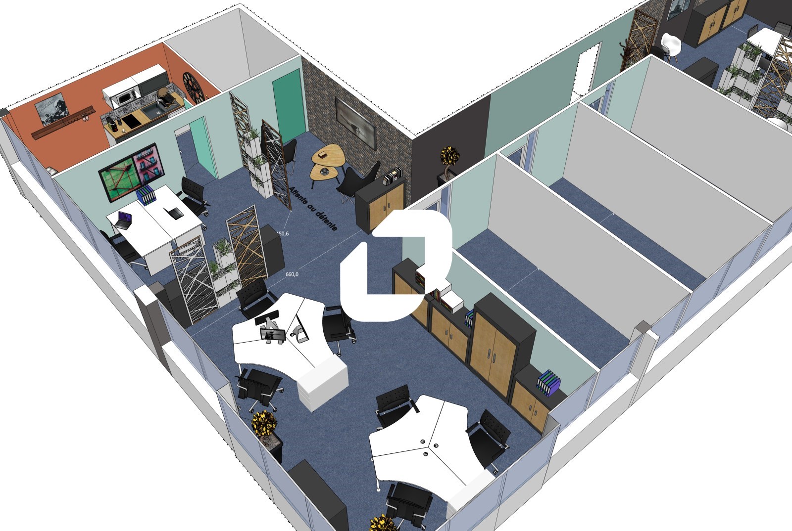 . Bureaux cloisonnés (décloisonnement possible)