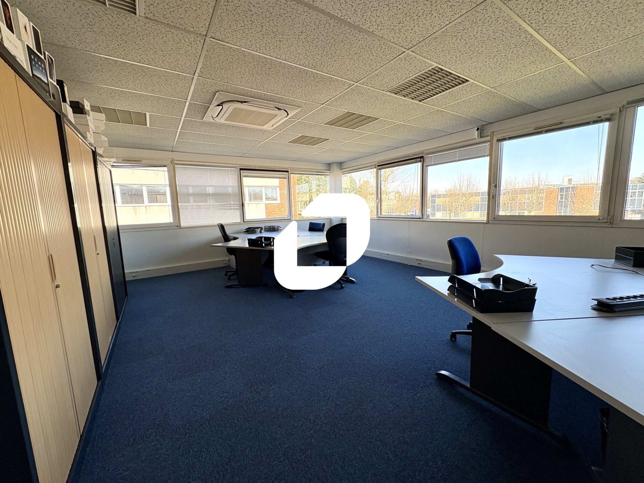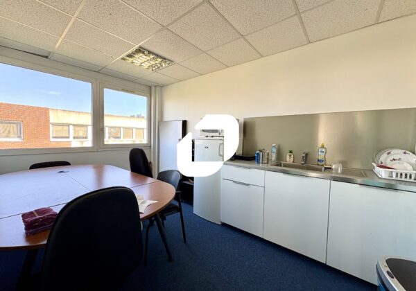 PARC BUROSPACE - Immprove vous propose à la location une surface de bureaux de 180 m² climatisée : trois bureaux cloisonnés, deux opens spaces et un espace cuisine. Sept places de stationnement sont disponibles, en plus d’un parking visiteurs à l’entrée du parc. A proximité de la base militaire, l’immeuble est accessible via de nombreuses lignes de bus ainsi que les axes routiers A86/N118.
