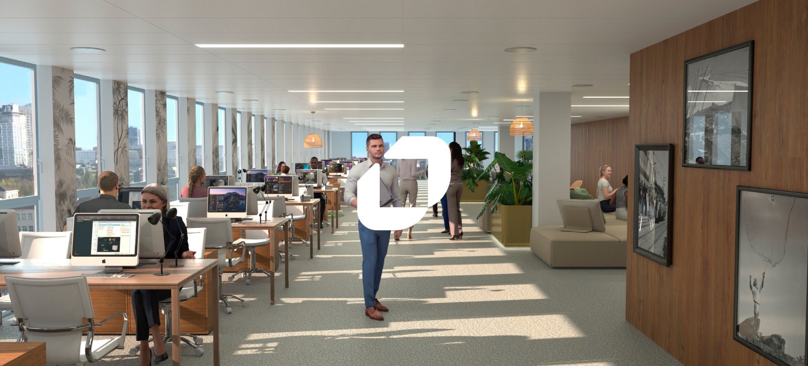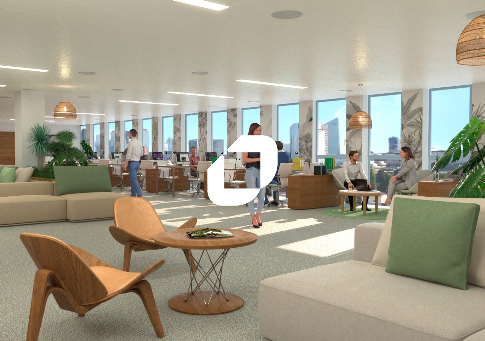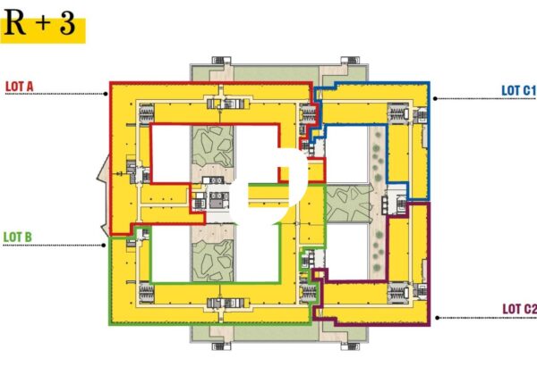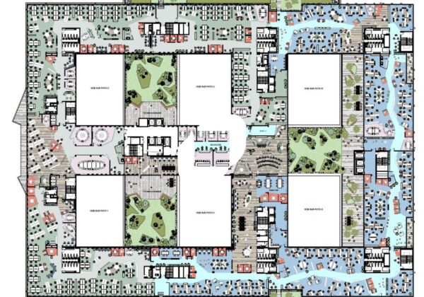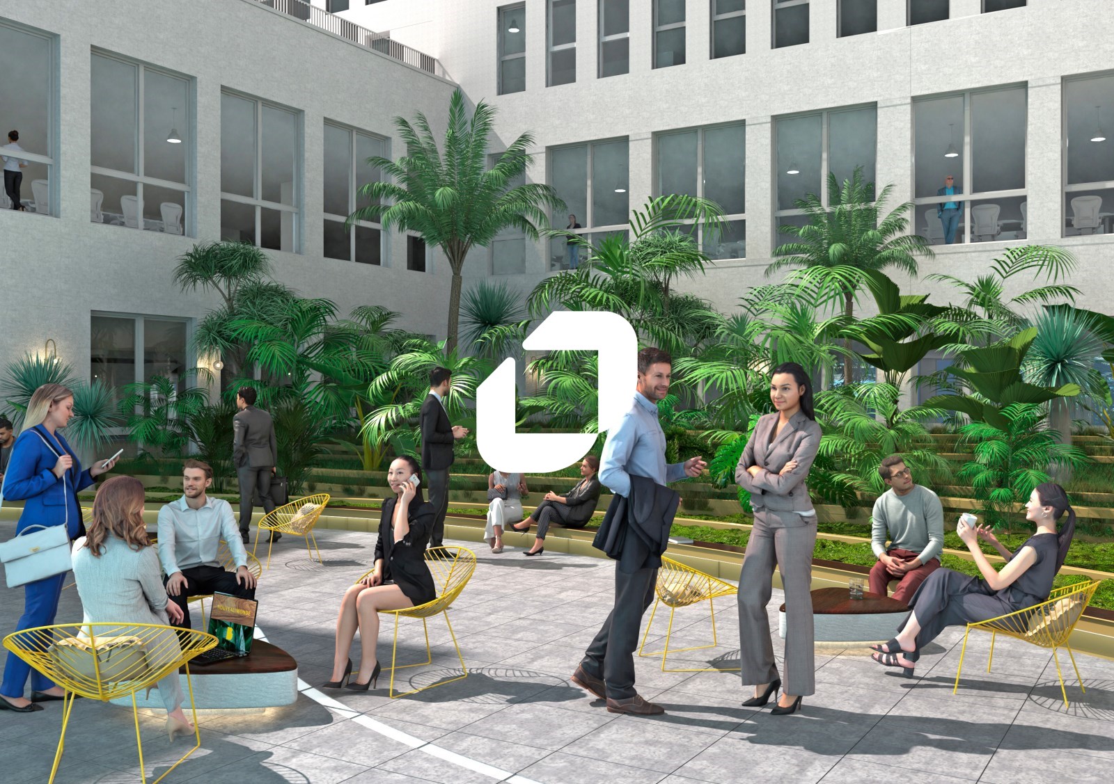 . Patios et terrasses accessibles à tous les étages pour une surface totale de 3 900m² : 6 patios végétalisées au RDC et au RDJ - Terrasse végétalisés au R+3 - balcons à tous les étages - Jardin paysager dans les patios et l'entrée principale