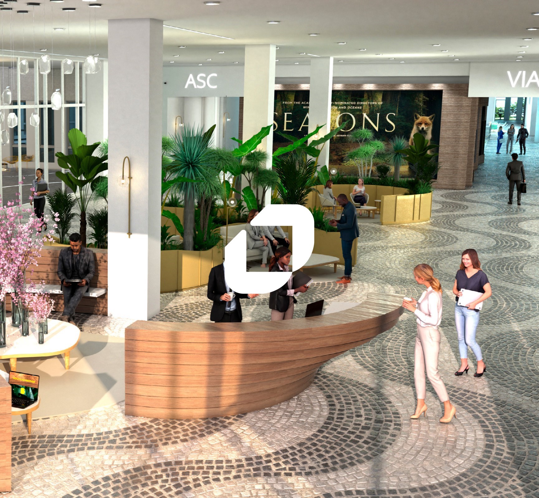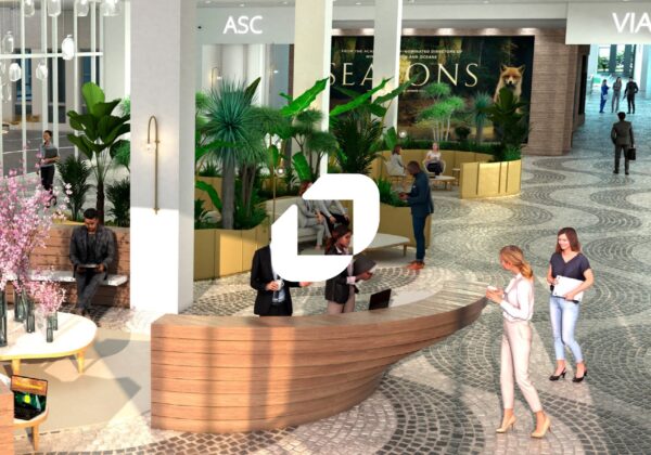 . Architecte SKIDMORE OWINGS ET MERRIL. Hall prestigieux avec banque d'hôtesses