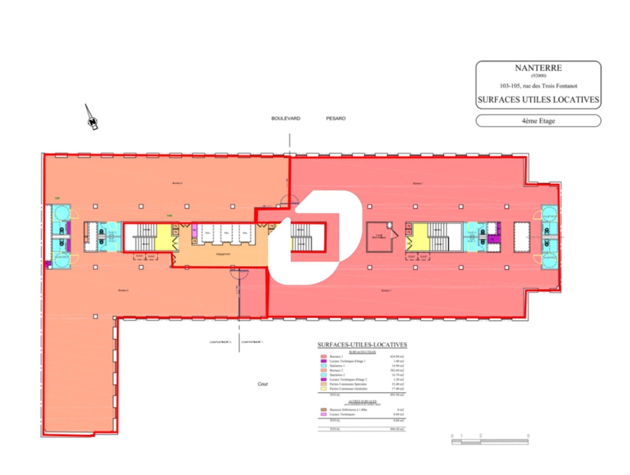 | Bureaux | 4ème étage | 432 m² | 290.00 | 50.88 |