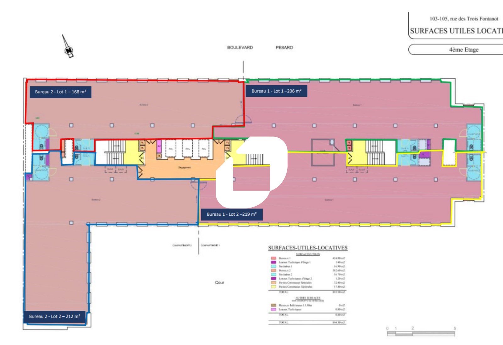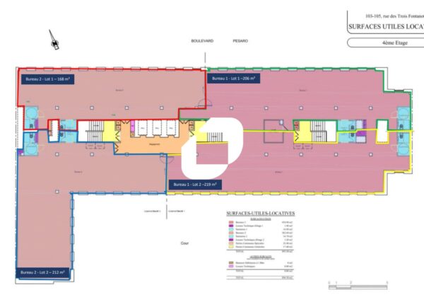 | Bureaux | 4ème étage | 445 m² | 290.00 | 50.88 |