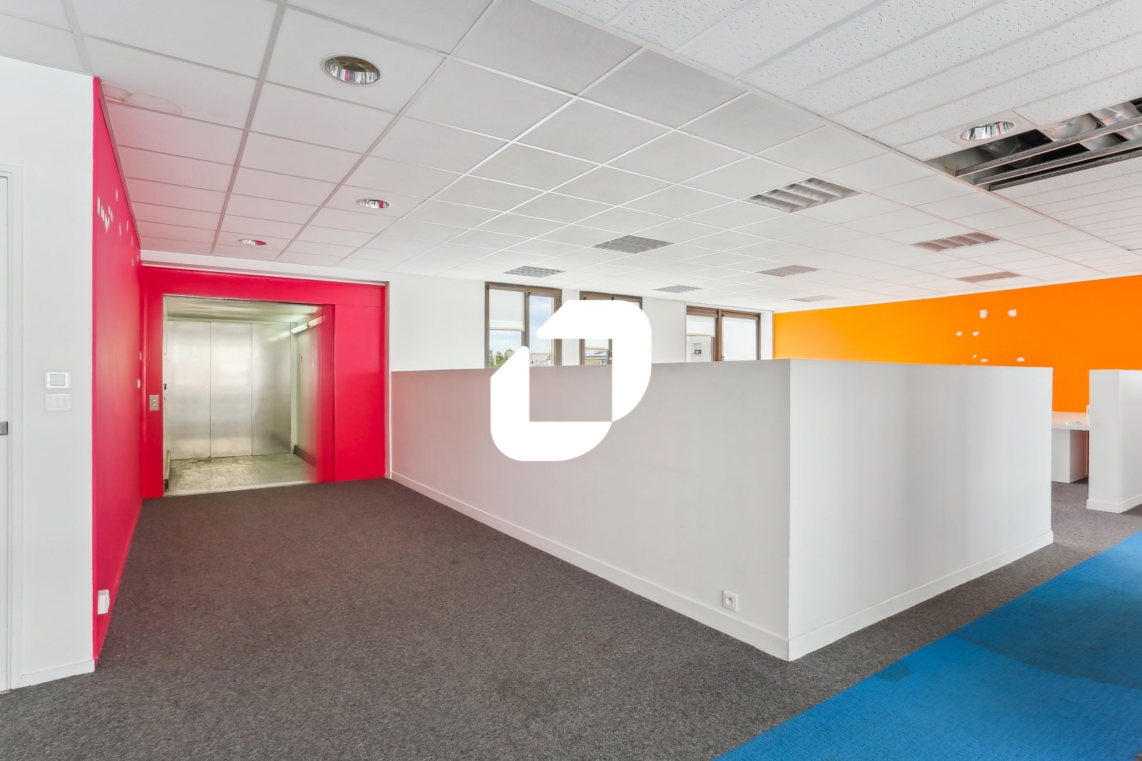. Étage privatif composé de bureaux cloisonnés et d’espaces ouverts. Cloisonnement amovible