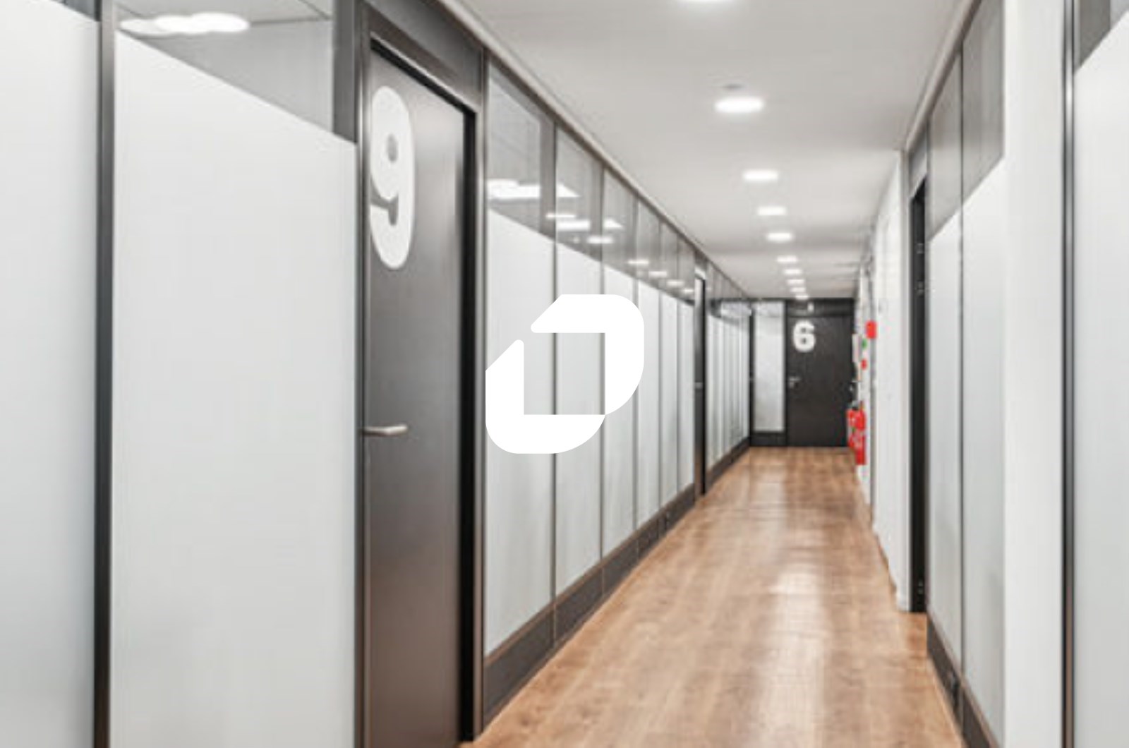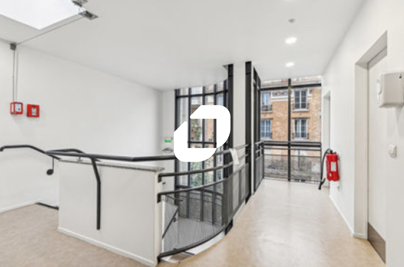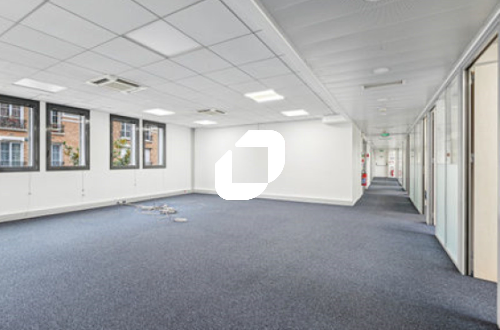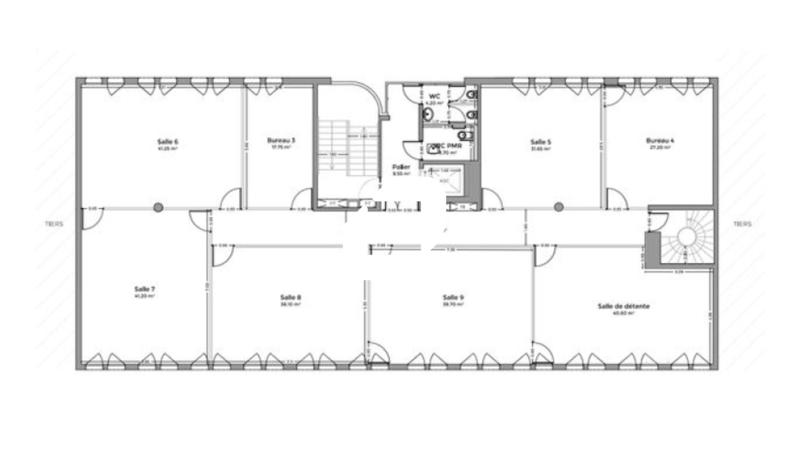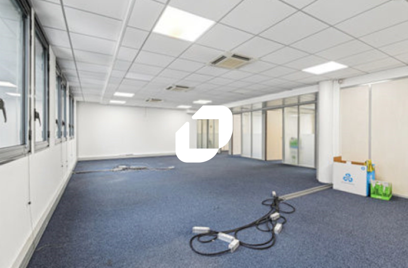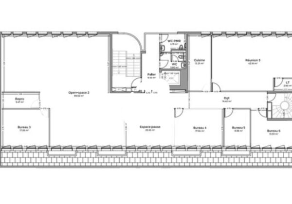 . 1er étage : 7-8 pièces cloisonnées en cloisons amovibles vitrées toute hauteur