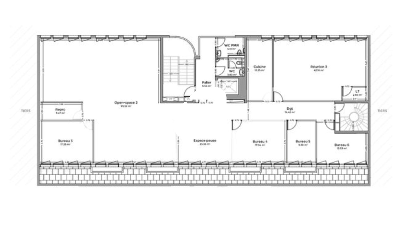. 2eme et 3eme étage: Plateaux livrés en espace ouverts traversants