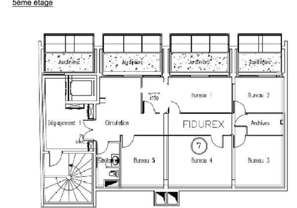 . Le 5ème étage est composés d'un accueil, un espace ouvert, 2 bureaux cloisonnés, une salle de réunion