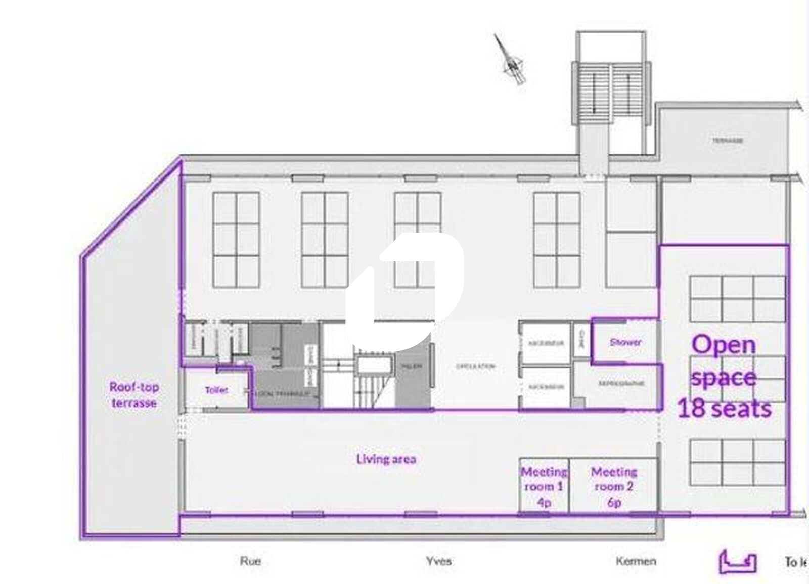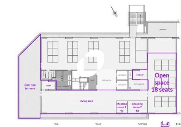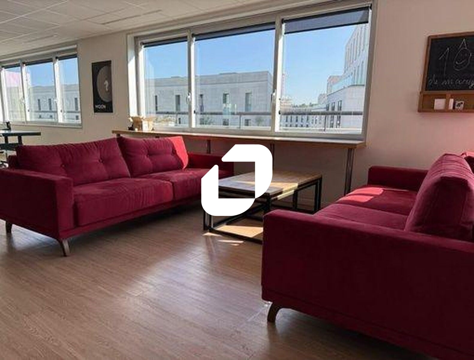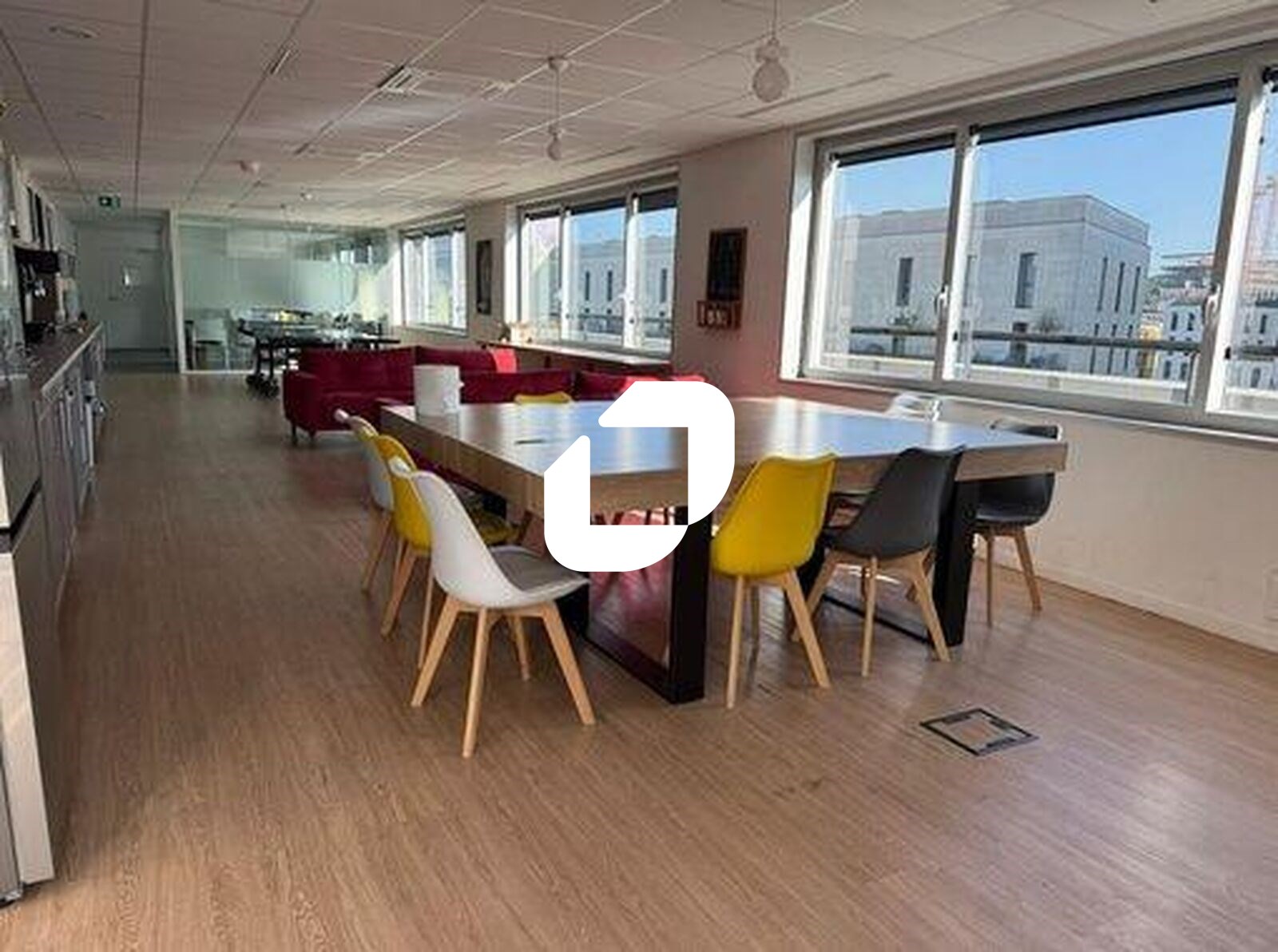 . Espaces communs : + de 150 m² avec cuisine équipée (machine à café, fontaine à eau plate et gazeuse), espace repas, table de ping-pong