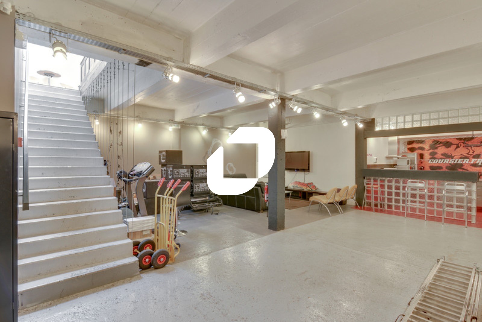. En sous sol, un espace aménageable en salles de réunions, en salles de productions, stockage …