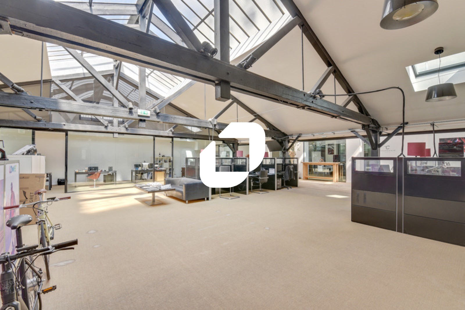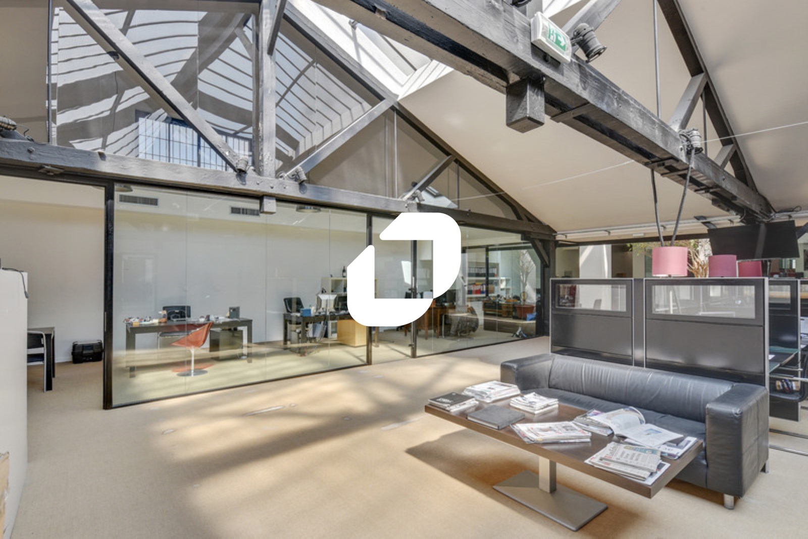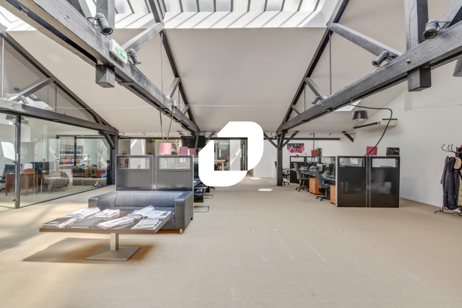 . Un espace de bureaux en rez de chaussée en open space sous verrière