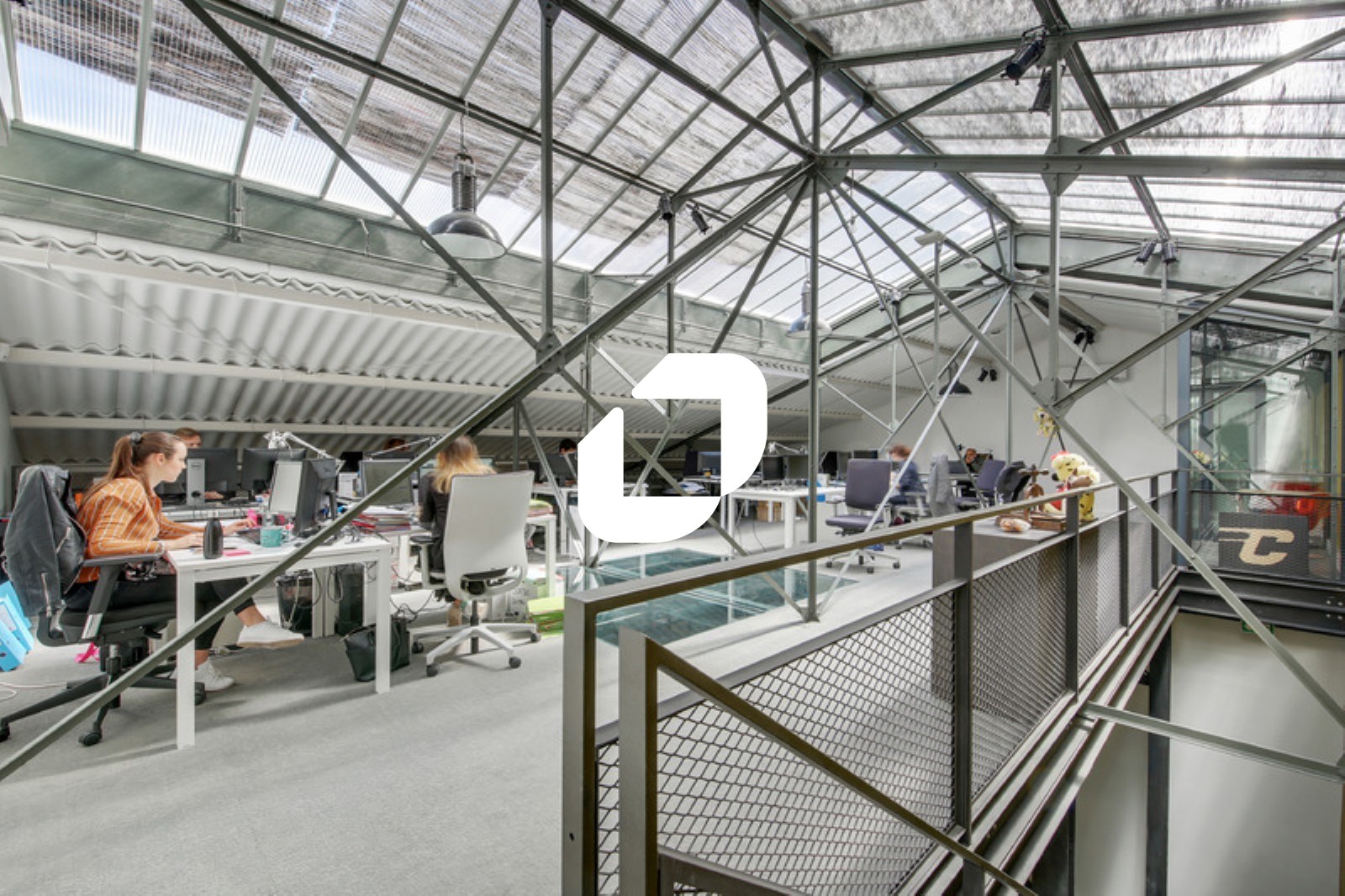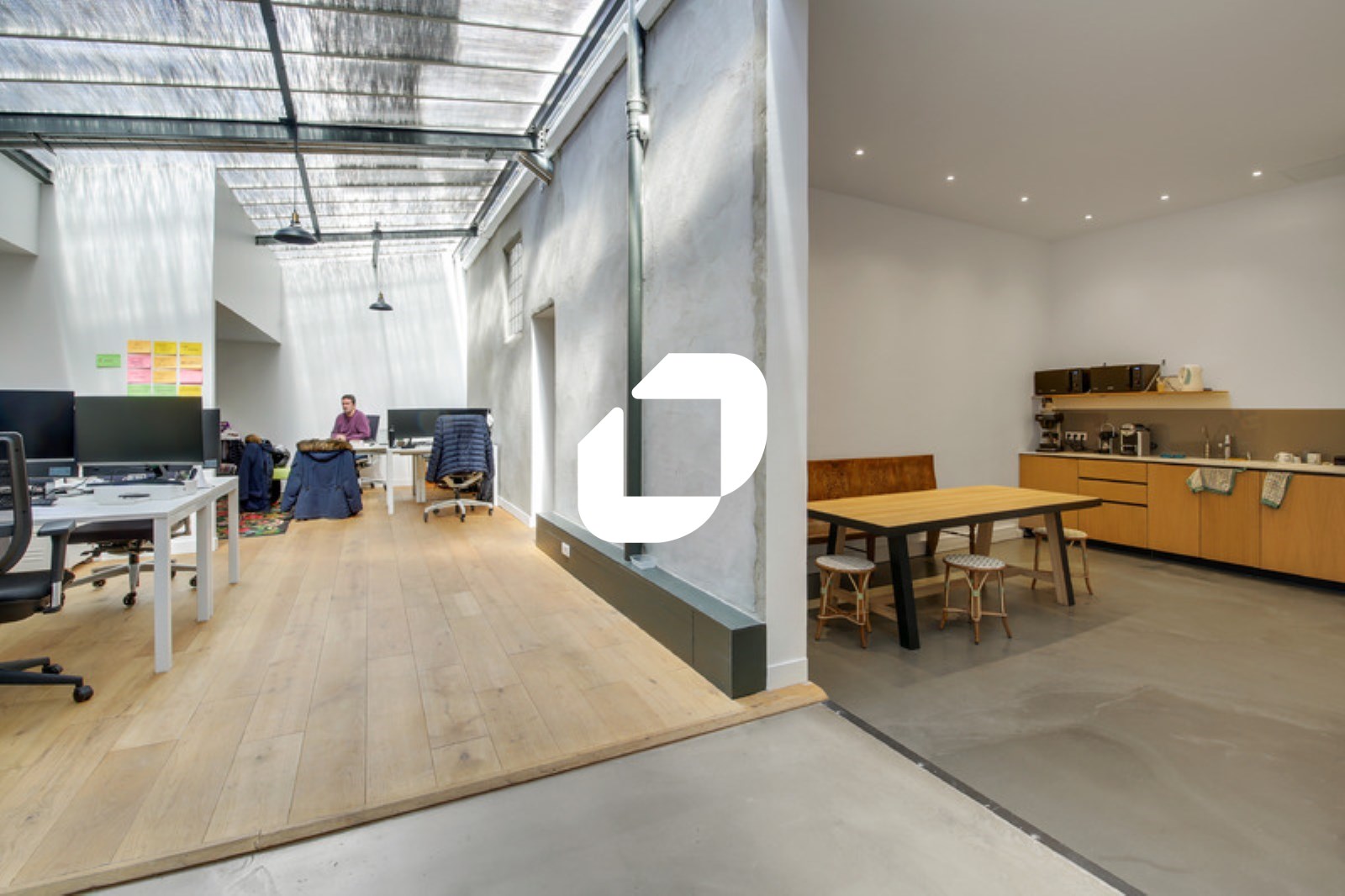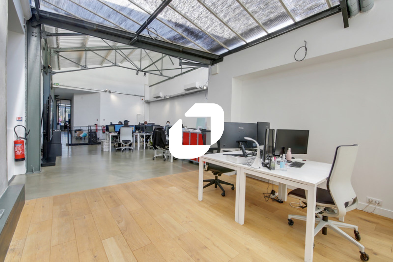 . Un espace de bureaux en rez de chaussée en open space sous verrière