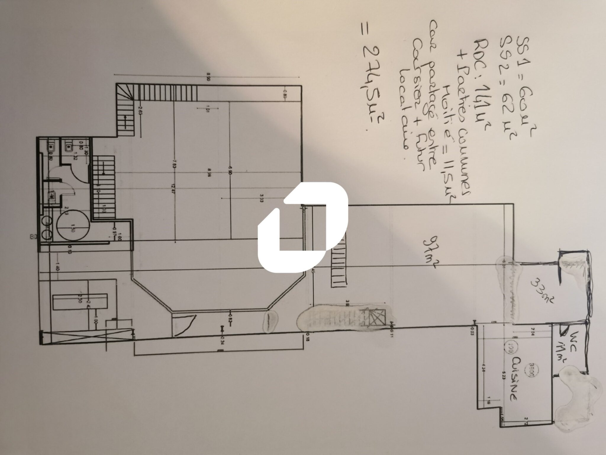 LOT B : 298 m² répartis entre un rez de chaussée et un sous sol.