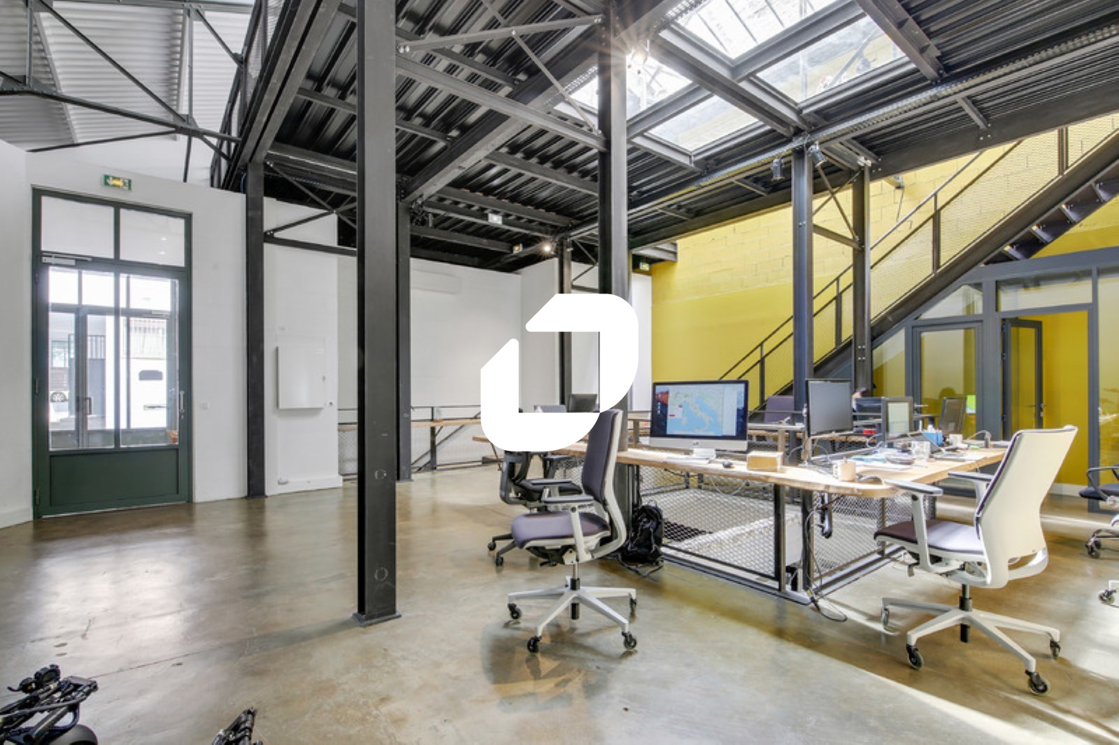 Ces bureaux sous verrières sont composés d’un espace accueil, d’une cuisine et salle d’eau, de plusieurs espaces de réunion et de grands open space. Des locaux atypiques assez rare sur le secteur offrant de multiples possibilités et un environnement de travail très typé start up.
