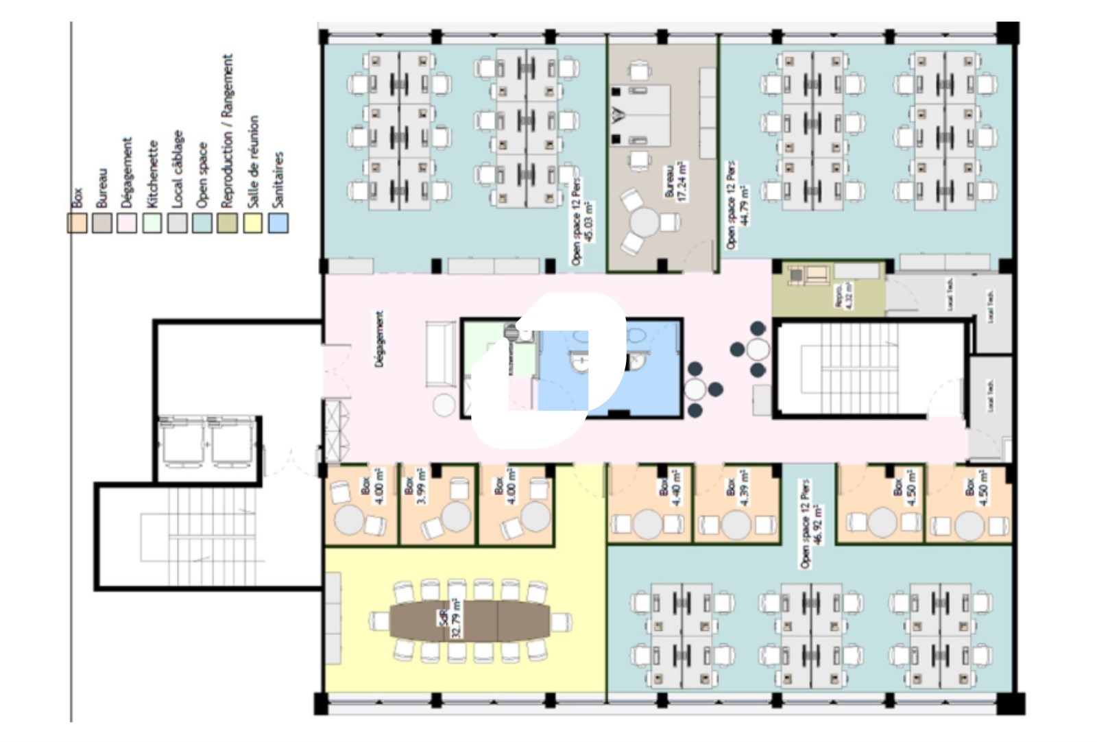 | Bureaux | 5ème étage | 321 m² | 520.00 | 35.38 |