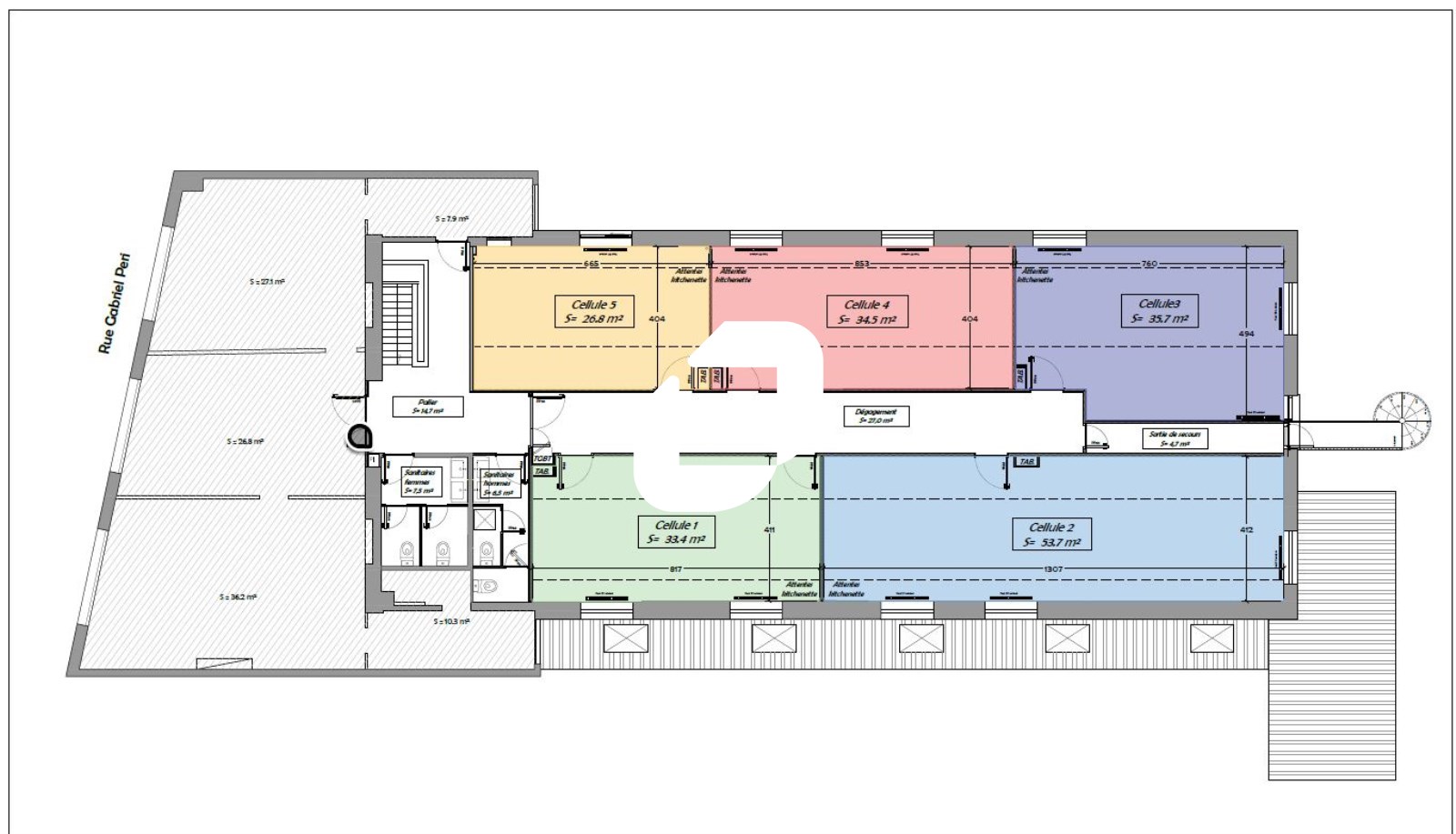 | Bureaux | 1er étage | 125 m² | 280.00 | 25.00 |